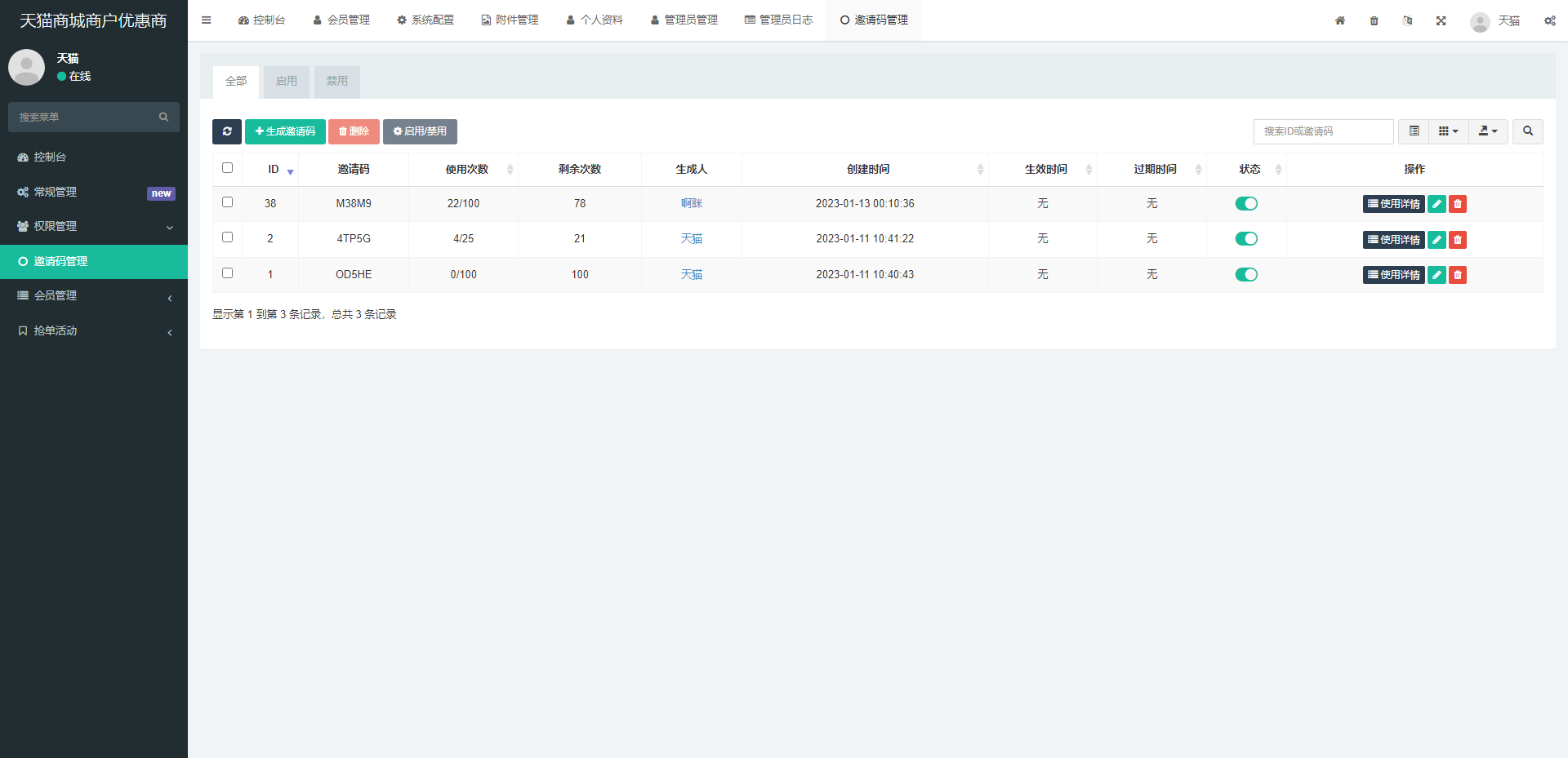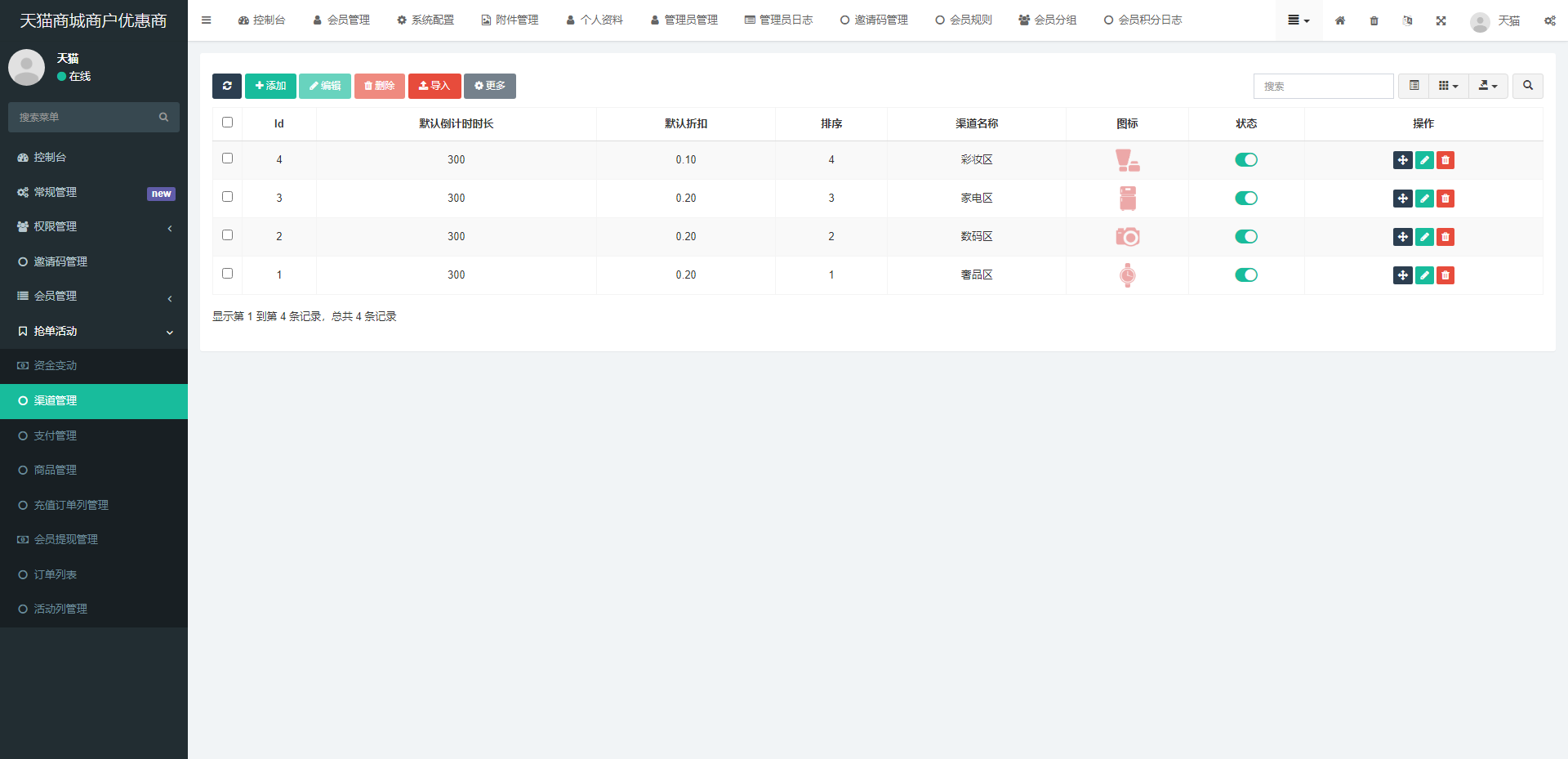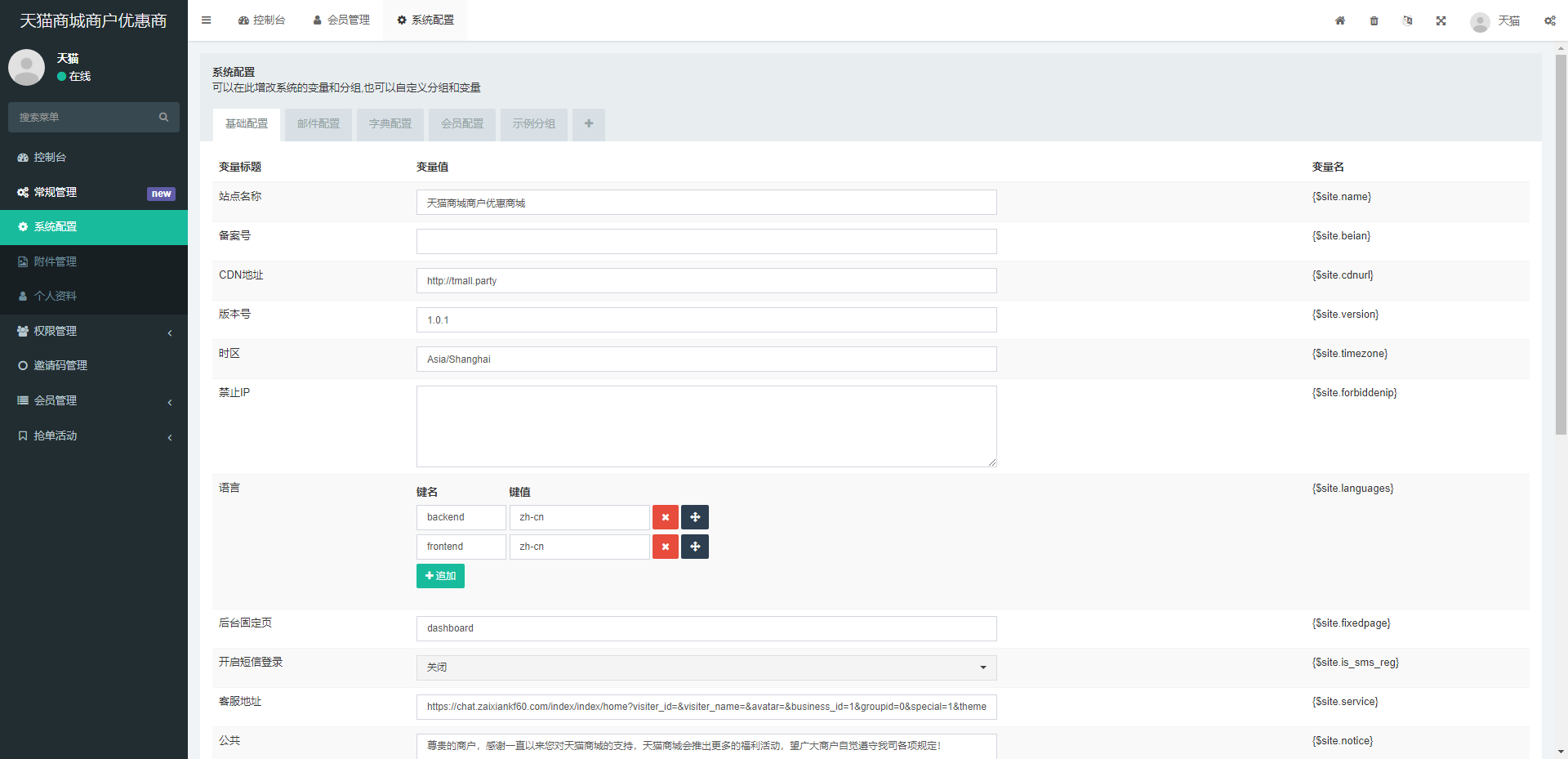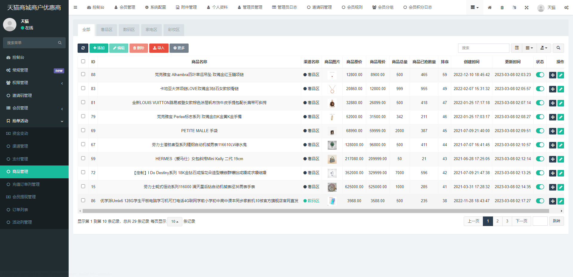 【特惠投资理财】全新开发天猫商城/优惠卷投资系统/奢饰品投资理财 此套是全新开发的天猫商城优惠卷投资系统,后端使用fastadmin框架 系统模式就是前端注册会员联系客户充值余额,后台添加单独会员的活动 前端会员即可领优惠卷投资 优惠卷投资 全新开发天猫商城 奢饰品投资理财 影视商城 投资理财