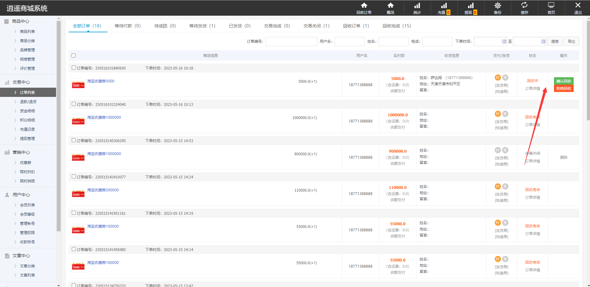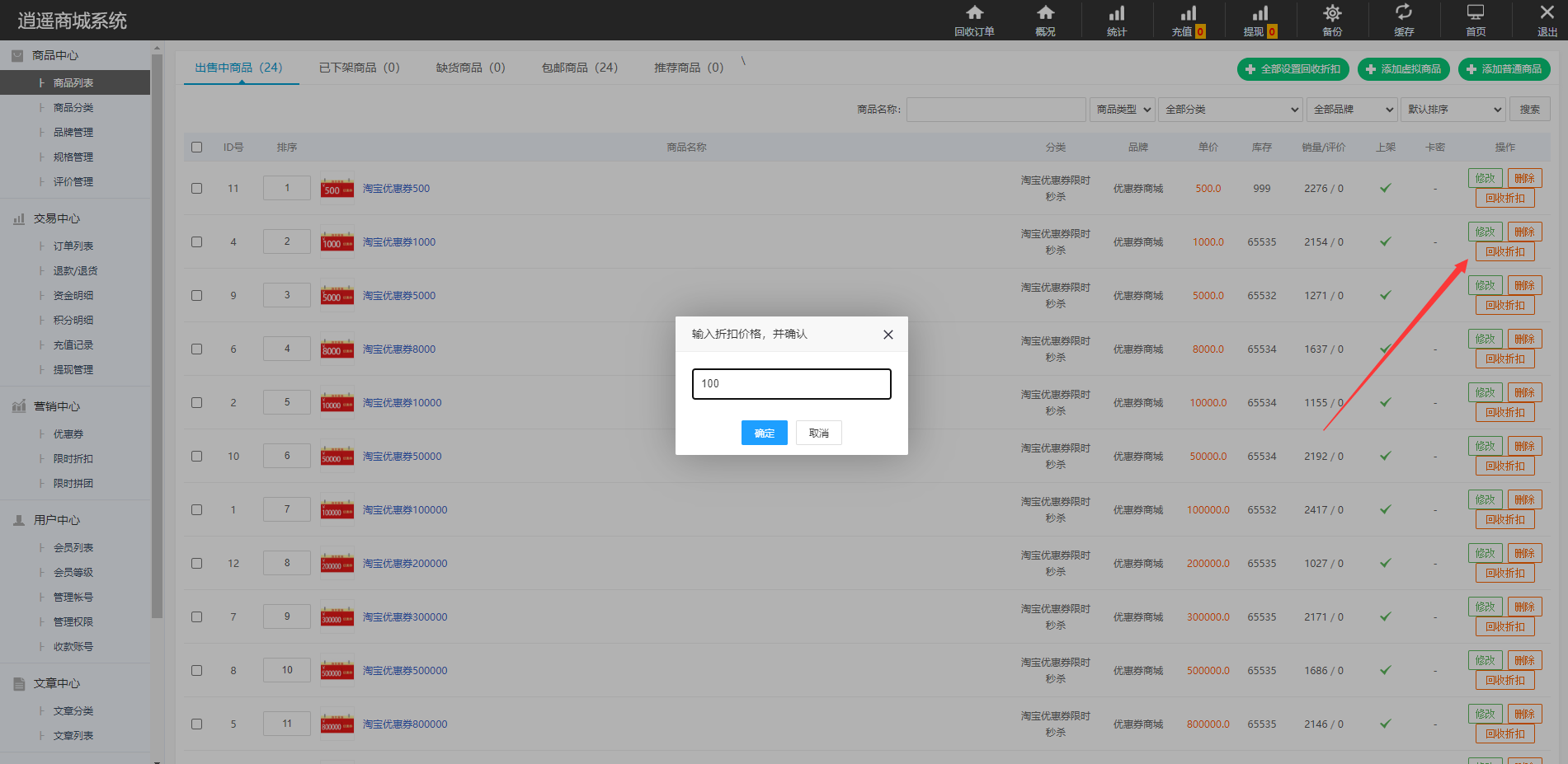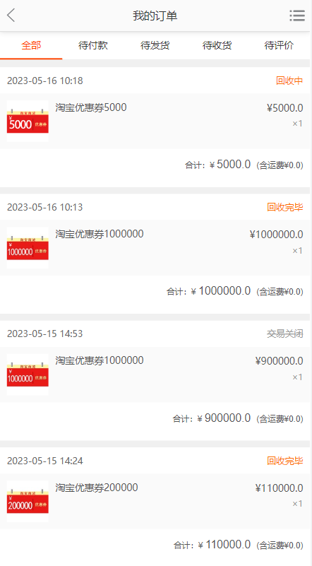 【特惠投资理财】淘宝优惠卷商城系统/优惠卷购物回购系统/优惠券返利 系统是逍遥商城二开的优惠卷购物回购系统,产品不局限于淘宝优惠卷可以自行更改产品 回收系统直接集成系统不需要二开搭建,前台提交后台订单直接回收,新增功能每个商品可设置回收折扣 优惠券返利 优惠卷 优惠卷商城 影视商城 购物回购