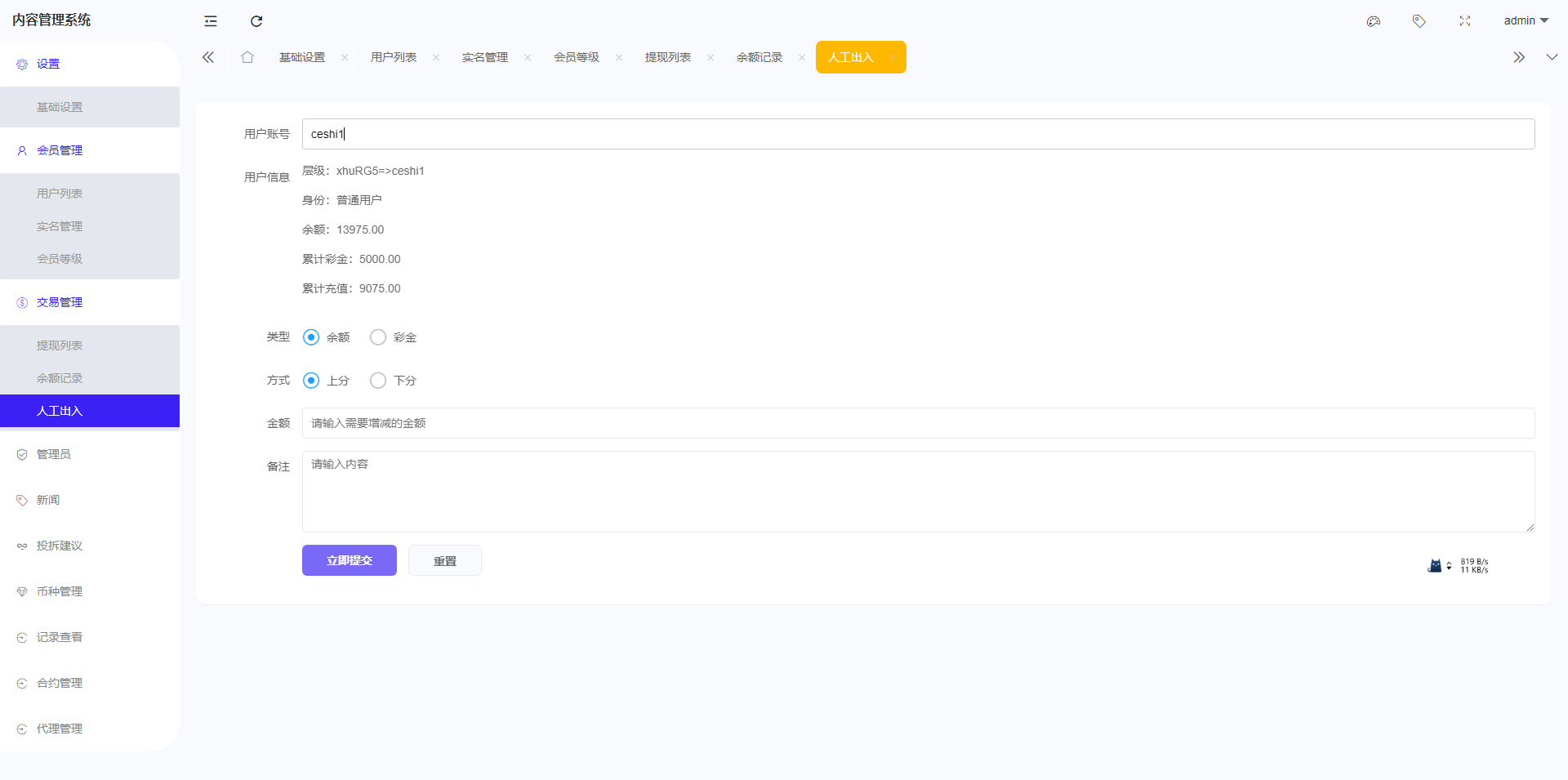 【特惠多國語言微交易】特惠交易所/特惠多國語言微盘/微交易/虚拟币时间盘 交易所爆改时间盘,只留了一个买涨买跌玩法。 优化页面逻辑,k线展示流畅。去除无用js加载。 修复替换地址漏洞,修改多处bug。 1.修改钱包逻辑,不需要转币 2.修复记录列表不显示交易类型的问题 3.去掉注册邮箱收验证码逻辑 4.后台增加手动上分下分功能 5.增加赠送彩金功能(后台统计不计算赠送彩金的统计) 6.增加代理线各项数据展示列表 7.还改的挺多地方,记不起了 区块链 多语言微交易 微交易 海外交易所 独家推荐 虚拟币时间盘