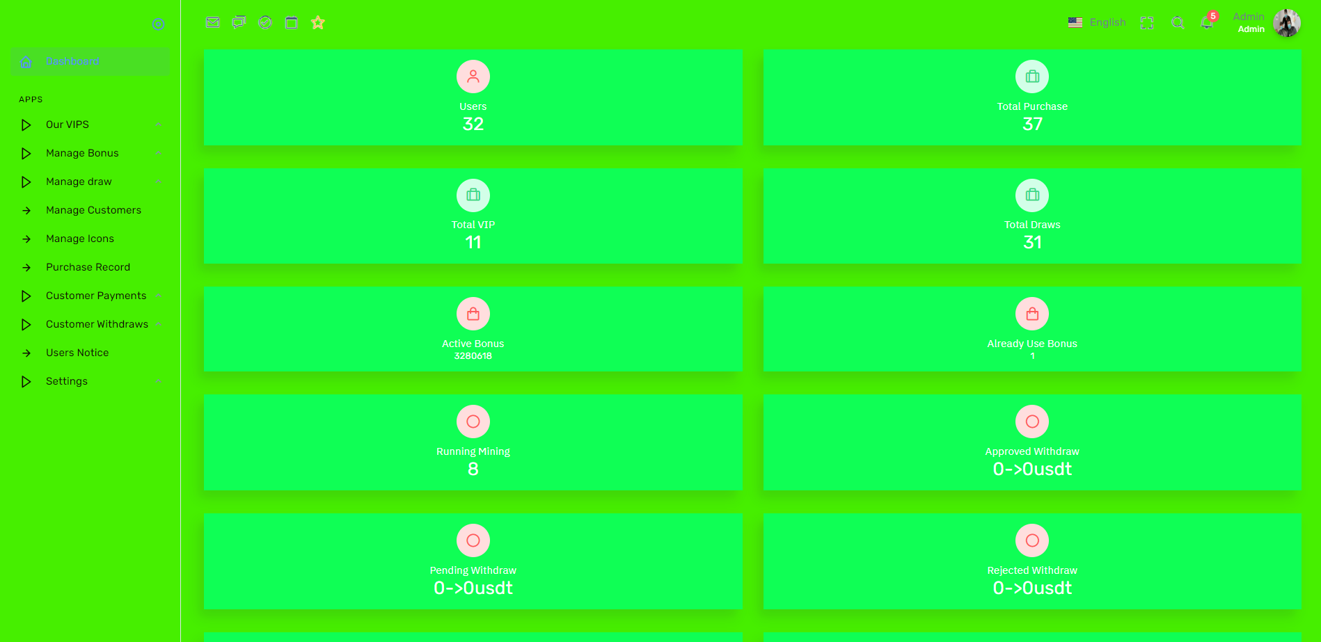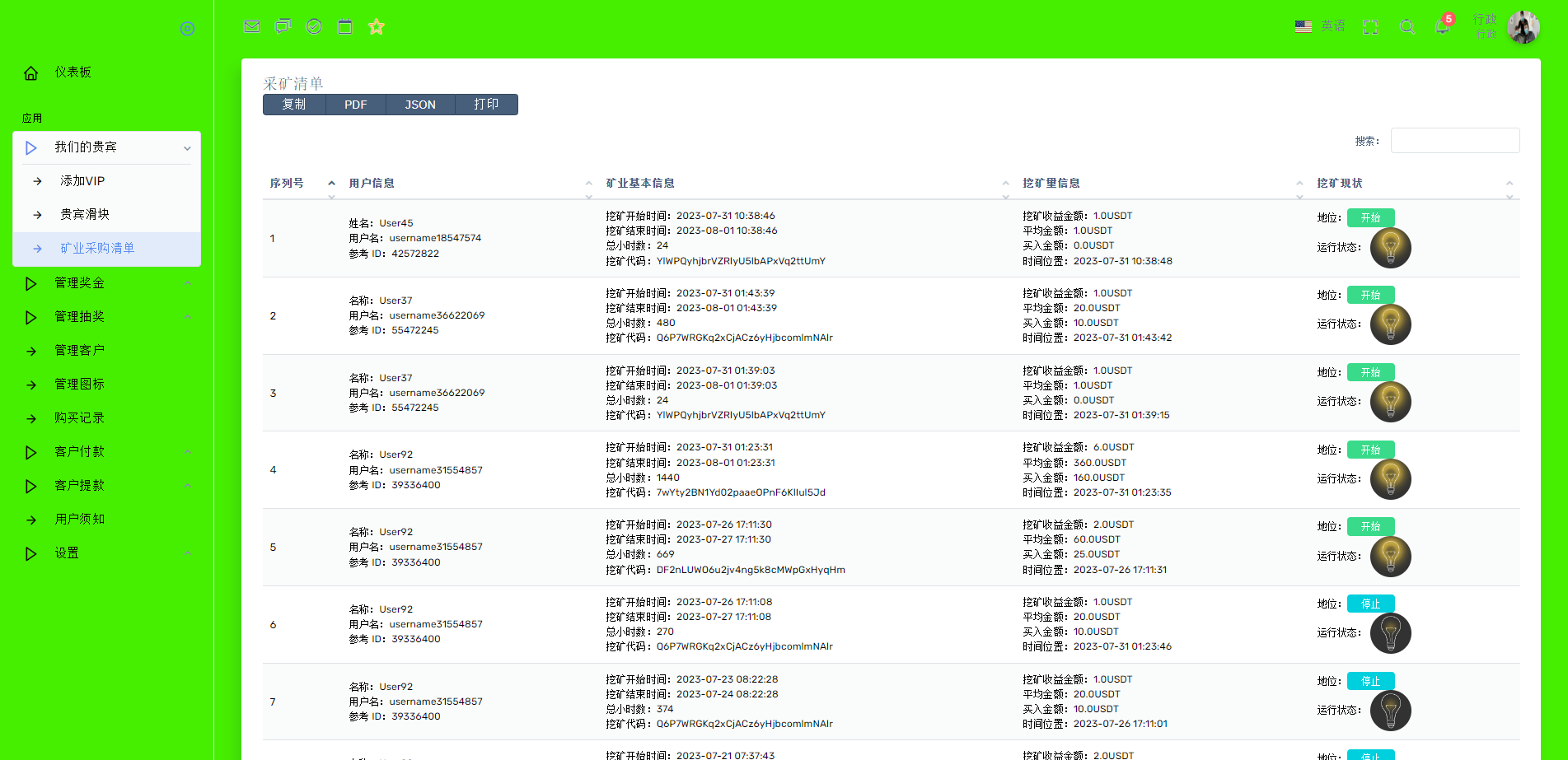此套是纯海外版的矿机投资系统,前后台都是英文的
