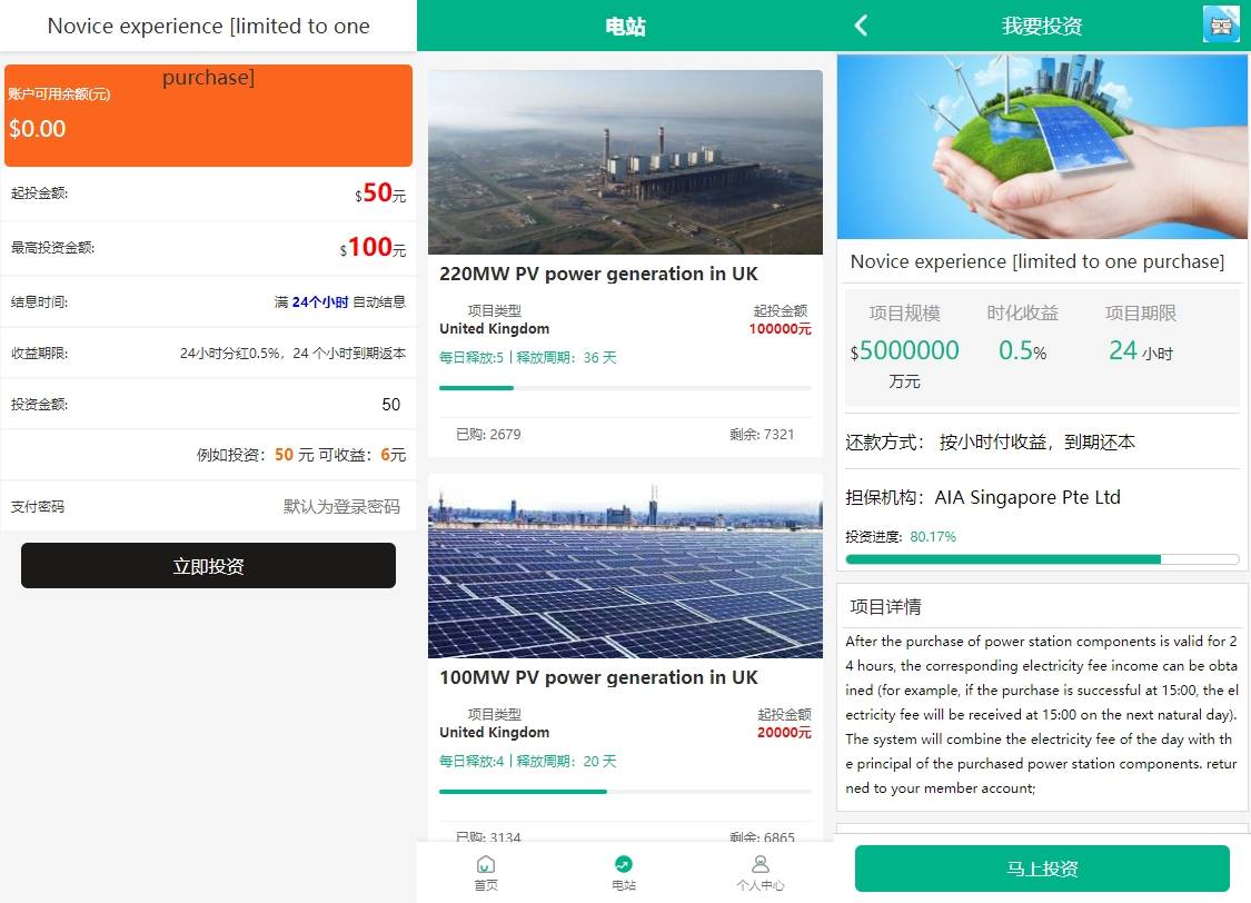 多语言海外投资理财PHP投资源码海外环保项目投资源码