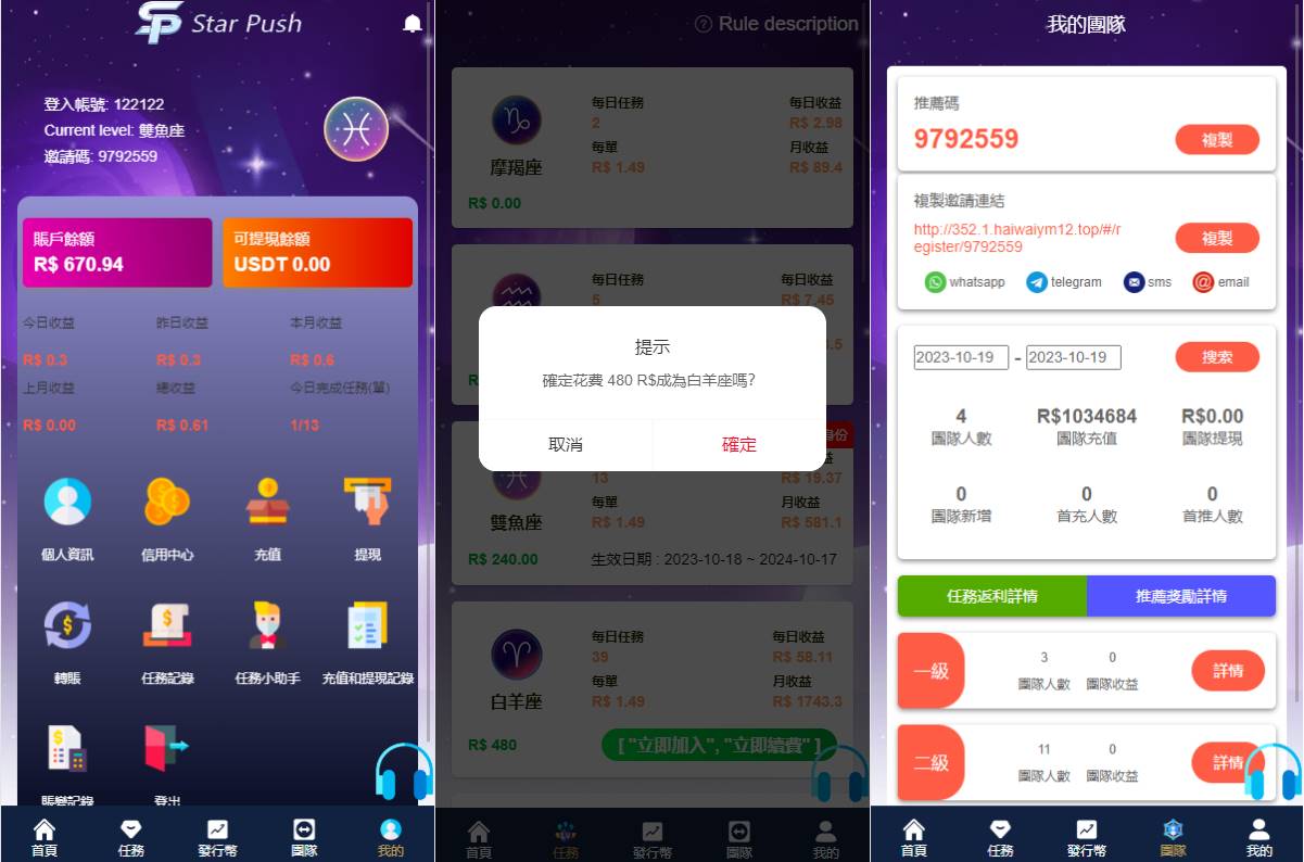 二开版海外任务系统/星座投资/TIKTOK脸书任务平台 系统前端vue带源码,带多语言默认隐藏需要自己修改 前端二开UI,改为星座开通做任务 源码是以前的多语言海外任务点赞二开的版本 系统简单易懂,裂变速度极快,需要的来