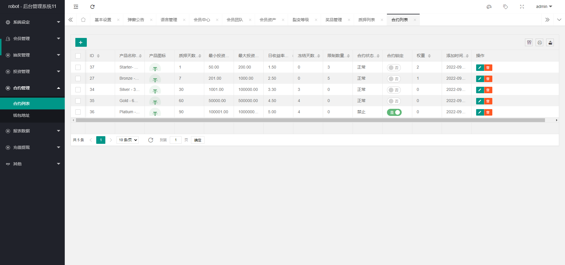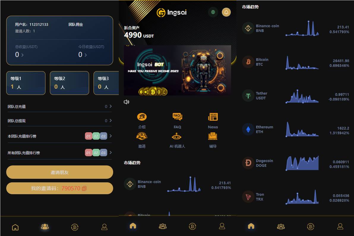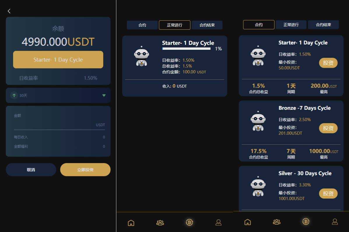 多语言海外机器人投资系统/虚拟币质押投资/区块链投资 全新定制版区块链机器人投资系统,前端uinapp开发带源码,后端thinkphp框架 系统是机器人投资购买,然后合约投资购买,带邀请分销,前端多语言默认中文隐藏