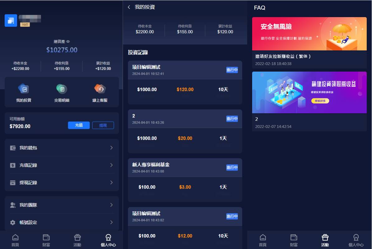 新版UI海外投资理财系统/多语言投资源码/投资众筹系统 系统前端vue开发,后端thinkphp全开源带前端vue源码 可用作于矿机、新能源、酒店理财、医疗理财等项目投资 带团队三级分销、产品可设置推广人数才能投资