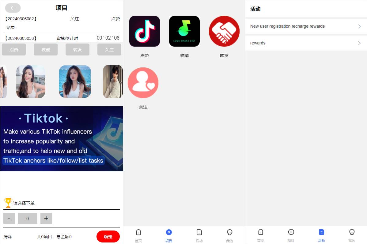 多语言伪商城系统/海外Tiktok点赞下注/竞猜下注/开奖预设 系统全新开发海外Tiktok点赞下注系统,前端带多国语言 前端uniapp开发带源码,后端php的thinkphp框架 源码全开源带完整脚本说明