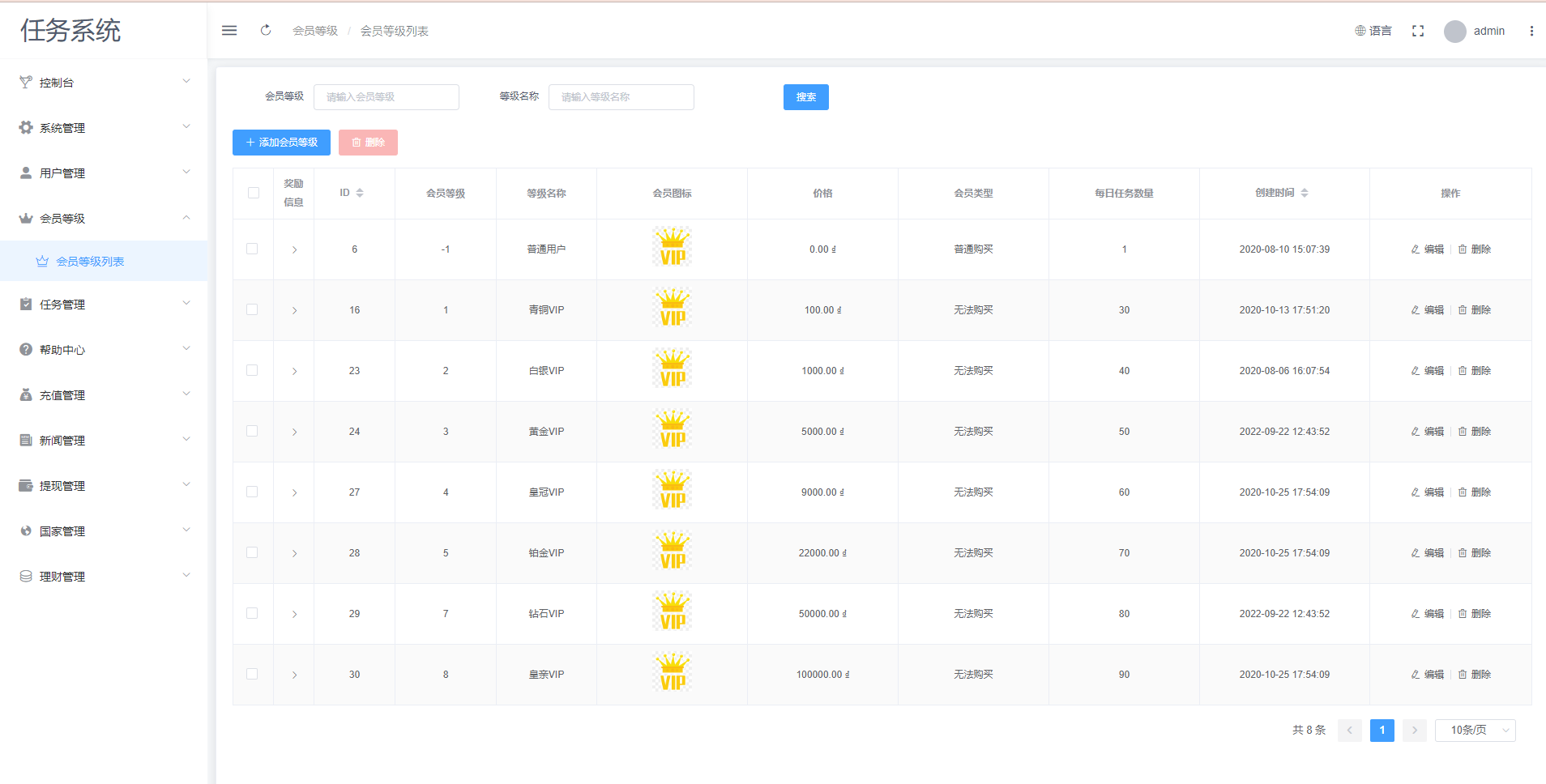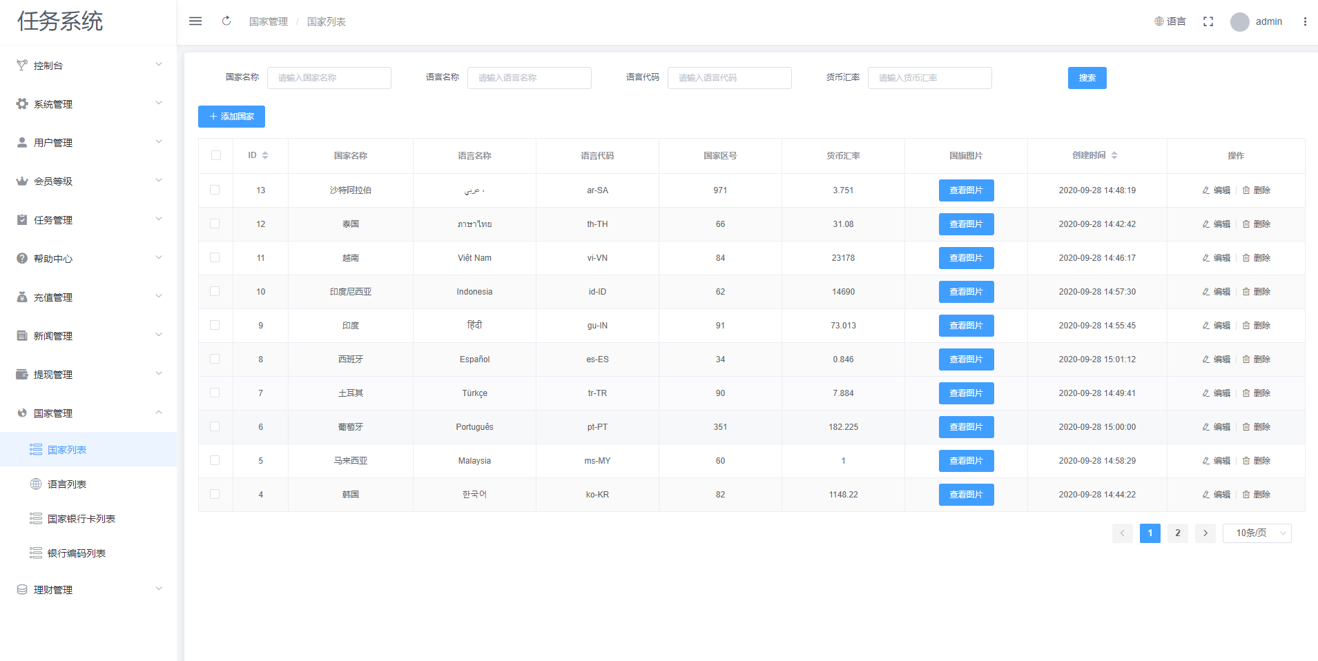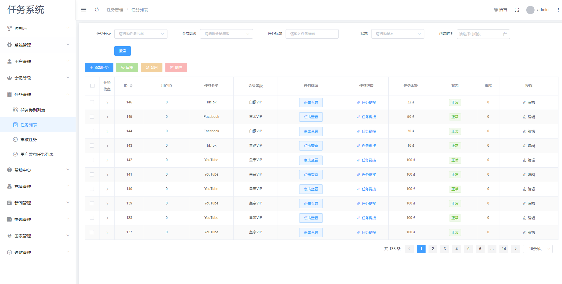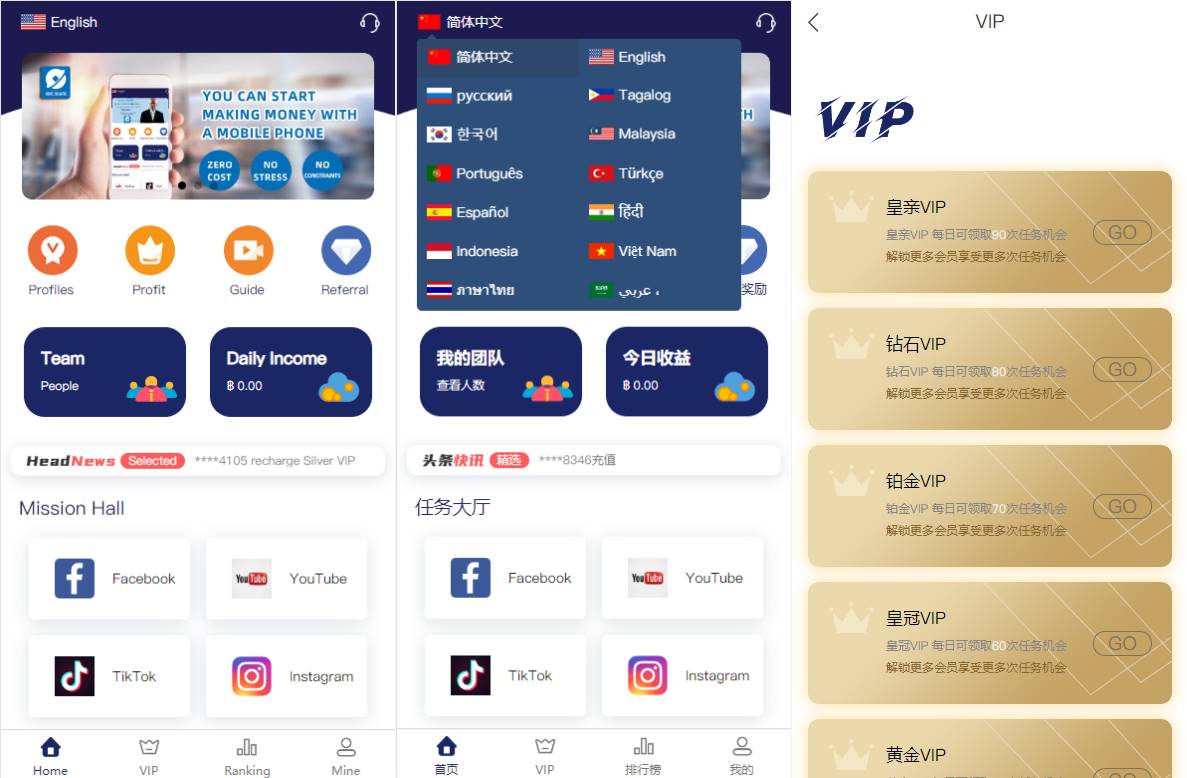 全新UI国际版多语言任务点赞源码系统脸书任务抖音点赞系统源码 升级版14种语言版本 前端后端 均为vue 全开源 可增需求,可定制开发,可修改UI设计 玩法简介 ①、会员购买套餐升级 ②、领取任务,提交截图上传审核 ③、后台审核任务完成情况,给会员确认佣金 ④、会员得到佣金后自行提现 ⑤、会员可分享链接邀请好友注册将获得提成 ⑥、国际多语言(支持定制增加语言和二次开发)