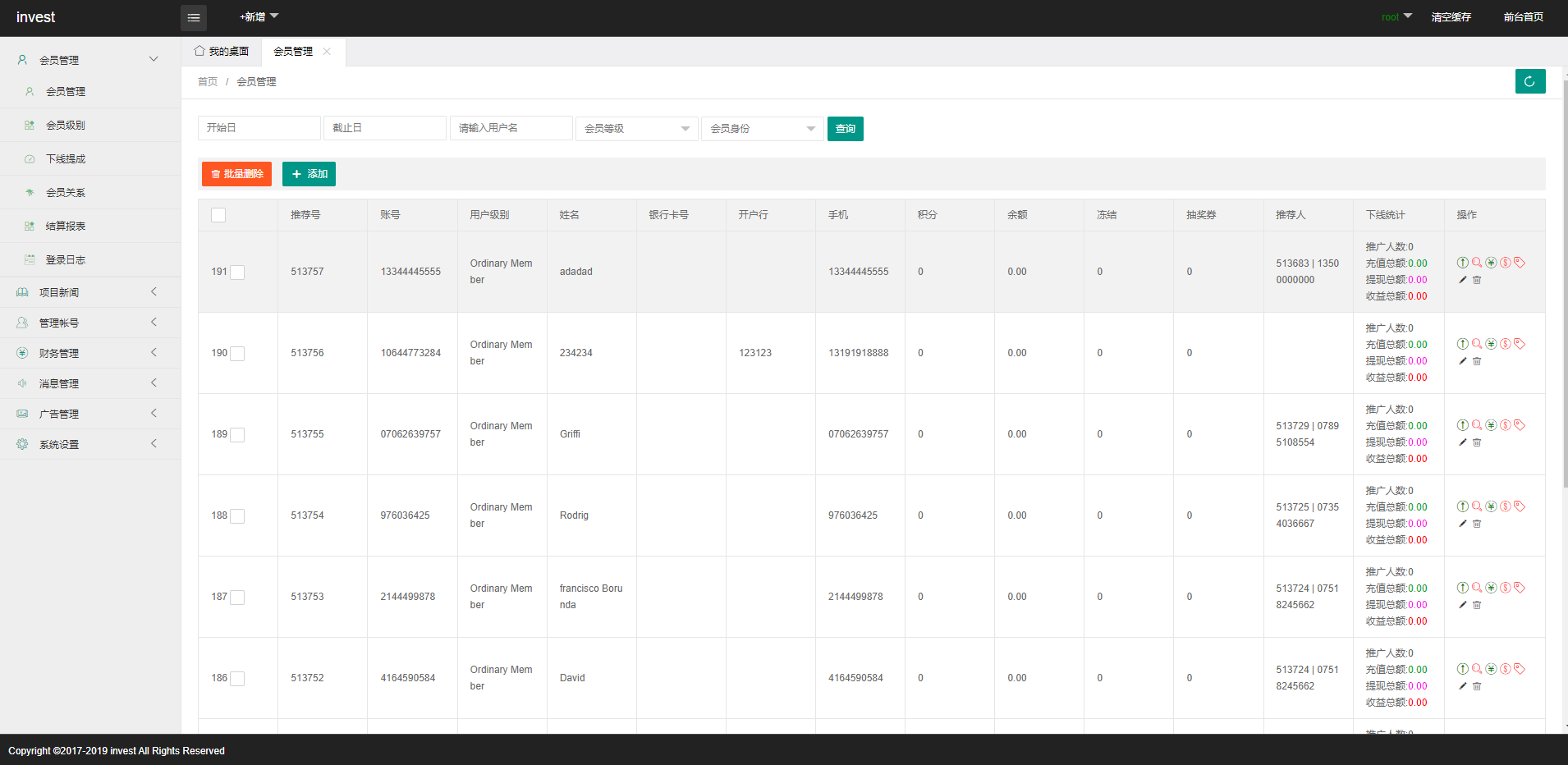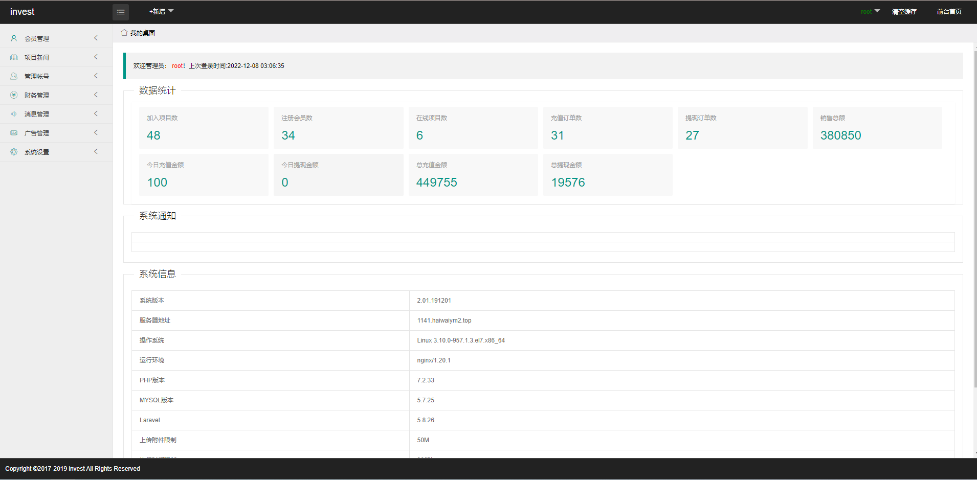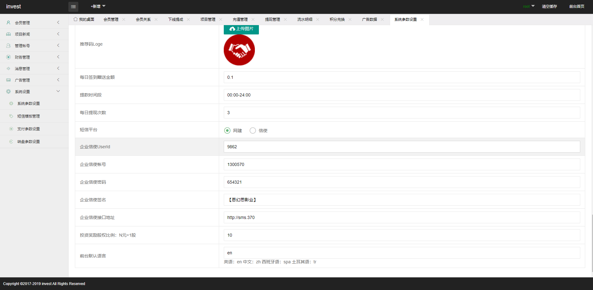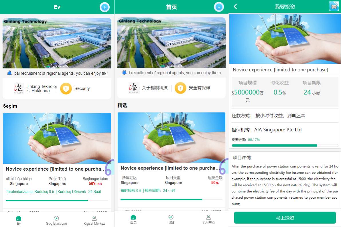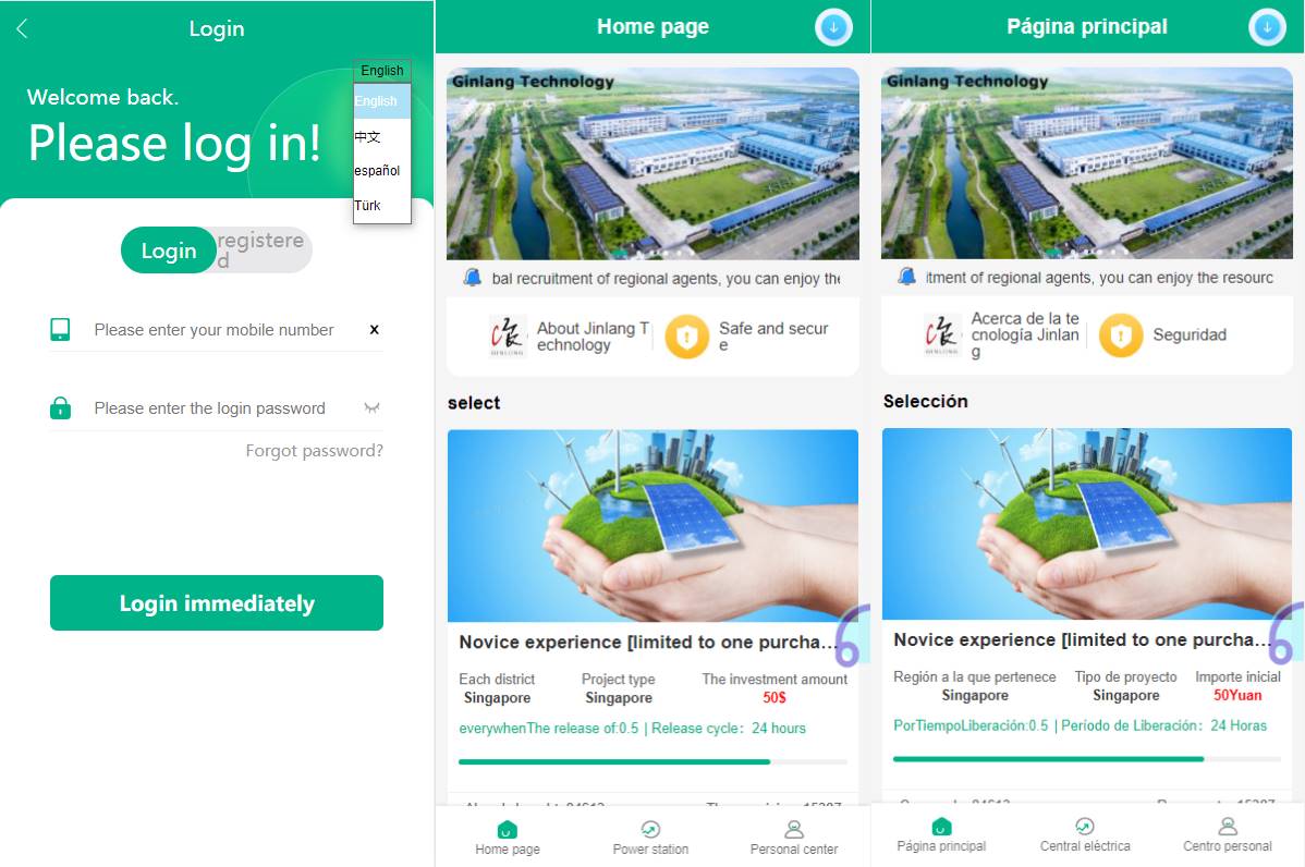 海外多语言光伏电站投资理财系统/多语言绿色项目投资源码 系统为laravel框架,新增多语言后台可设置默认语言 投资理财划分每天收益项目,早运营早赚钱。 1、新手体验投资项目:每日返息,到期还本(投资期限短,利息高) 2、稳健投资项目:每日返息。到期还本(投资期限短,稳健增值) 3、投资电站赚取收益 分红模式: 1、每小时返息,到期还本 2、每日返息,到期还本 3、每周返息,到期还本 4、每月返息,到期还本 5、每日得利,保本保息 6、到期还本还息