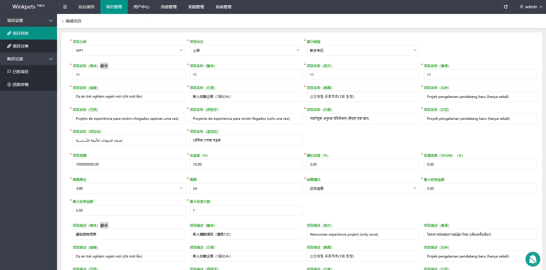 【海外多语言vue投资源码】宠物投资理财系统/多语言投资源码/前端VUE后端PHP