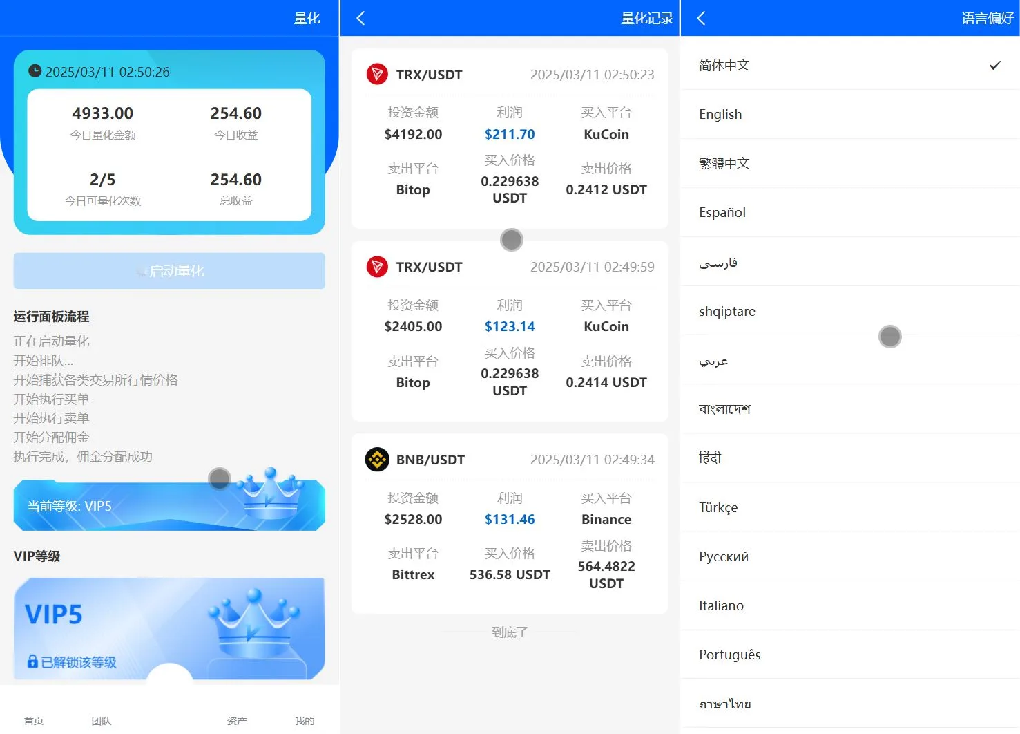 BDMarket多语言量化钱包投资理财源码/19种语言+3级分销+虚拟币实时数据+谷歌验证器+完整代理/前端uniapp纯源码+后端php