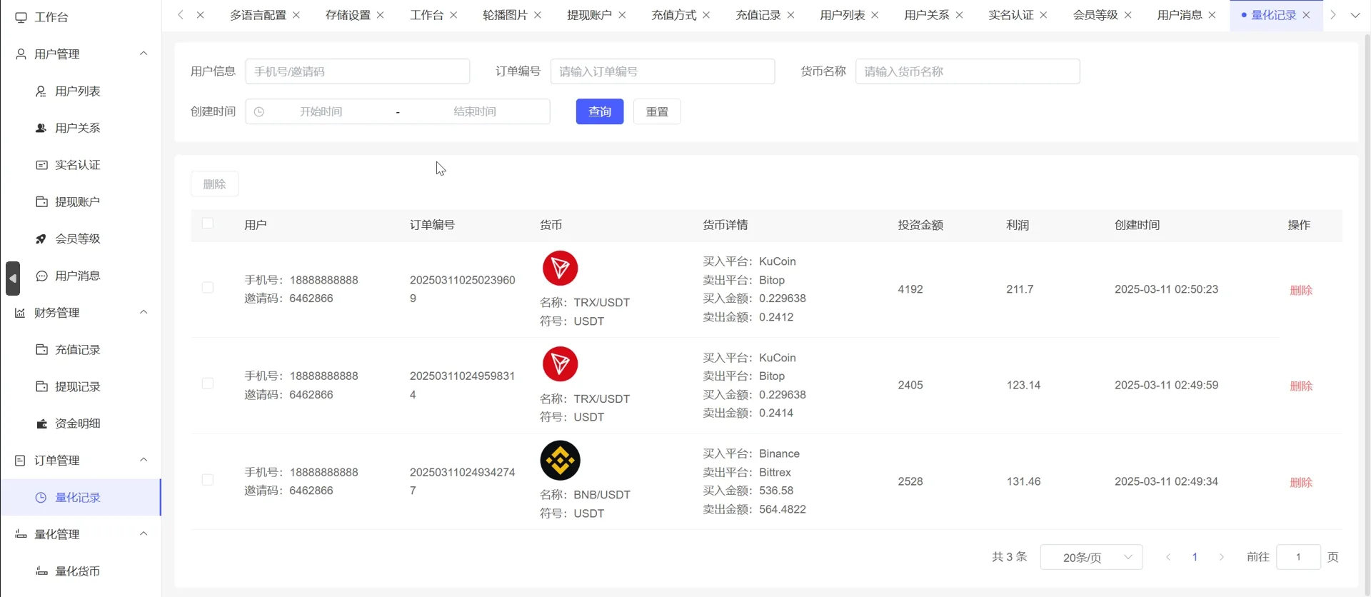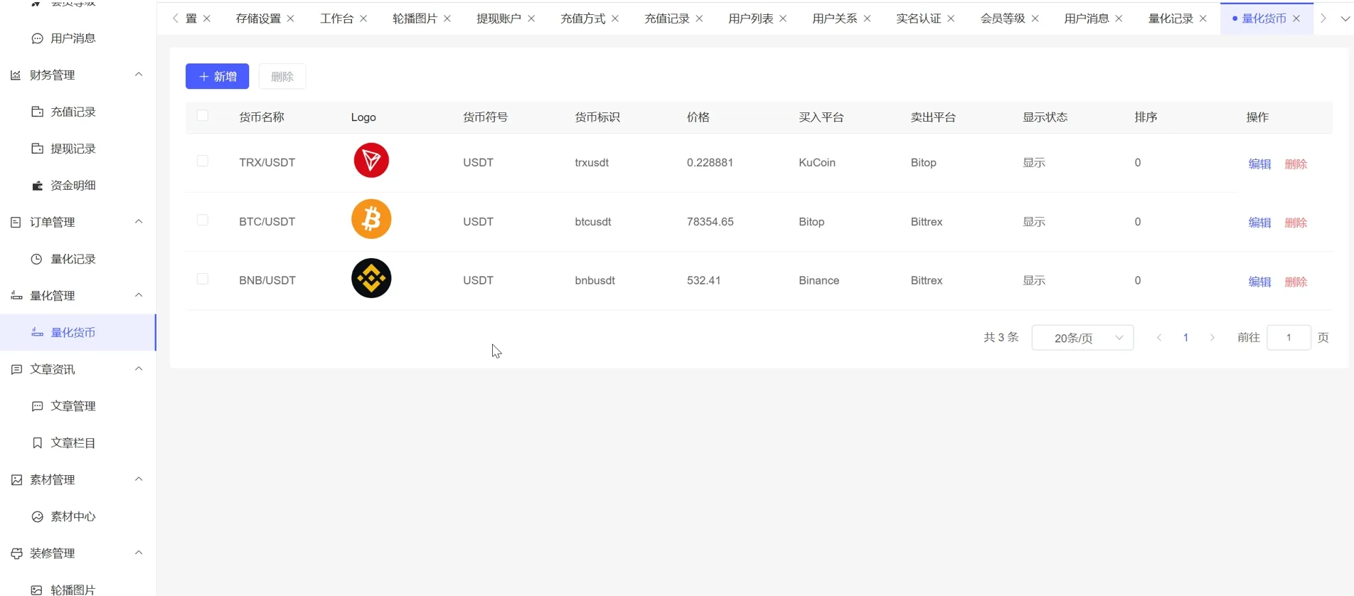 挺不错的一套理财源码,带实时虚拟币行情,后台可以归集钱包,有单独的USDT钱包程序,全开源可以任意二开