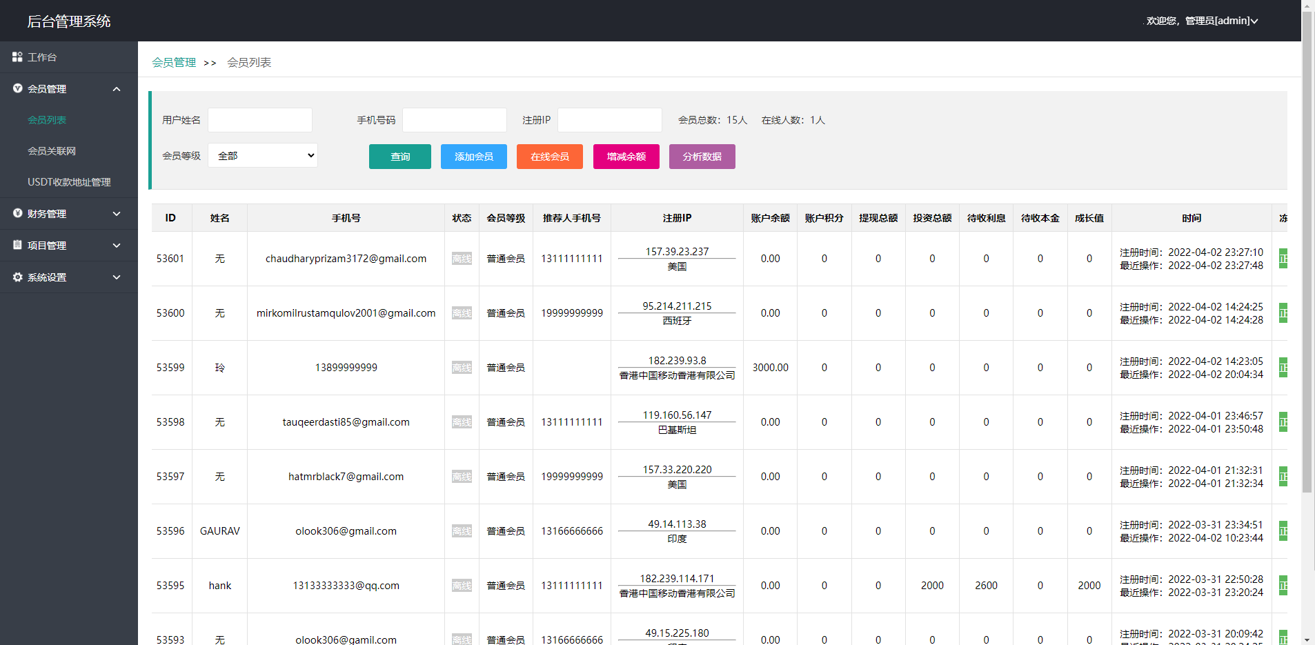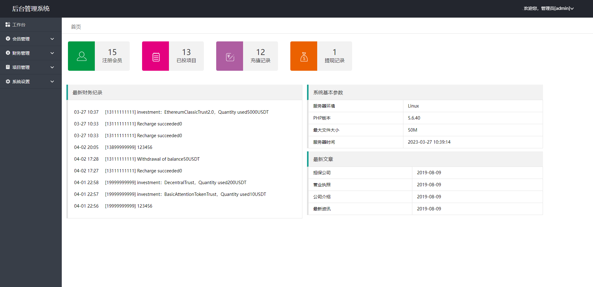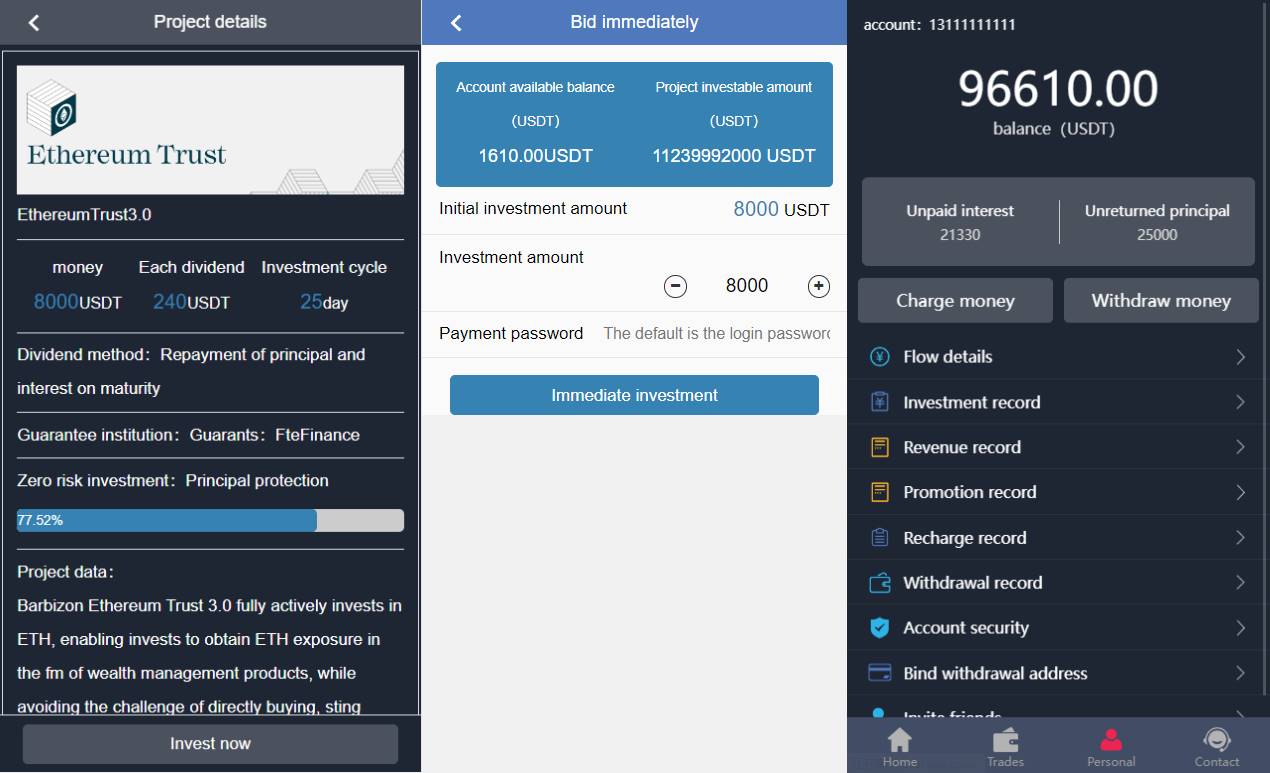 此套是以前客户运营下来的海外投资系统,前端产品可更改