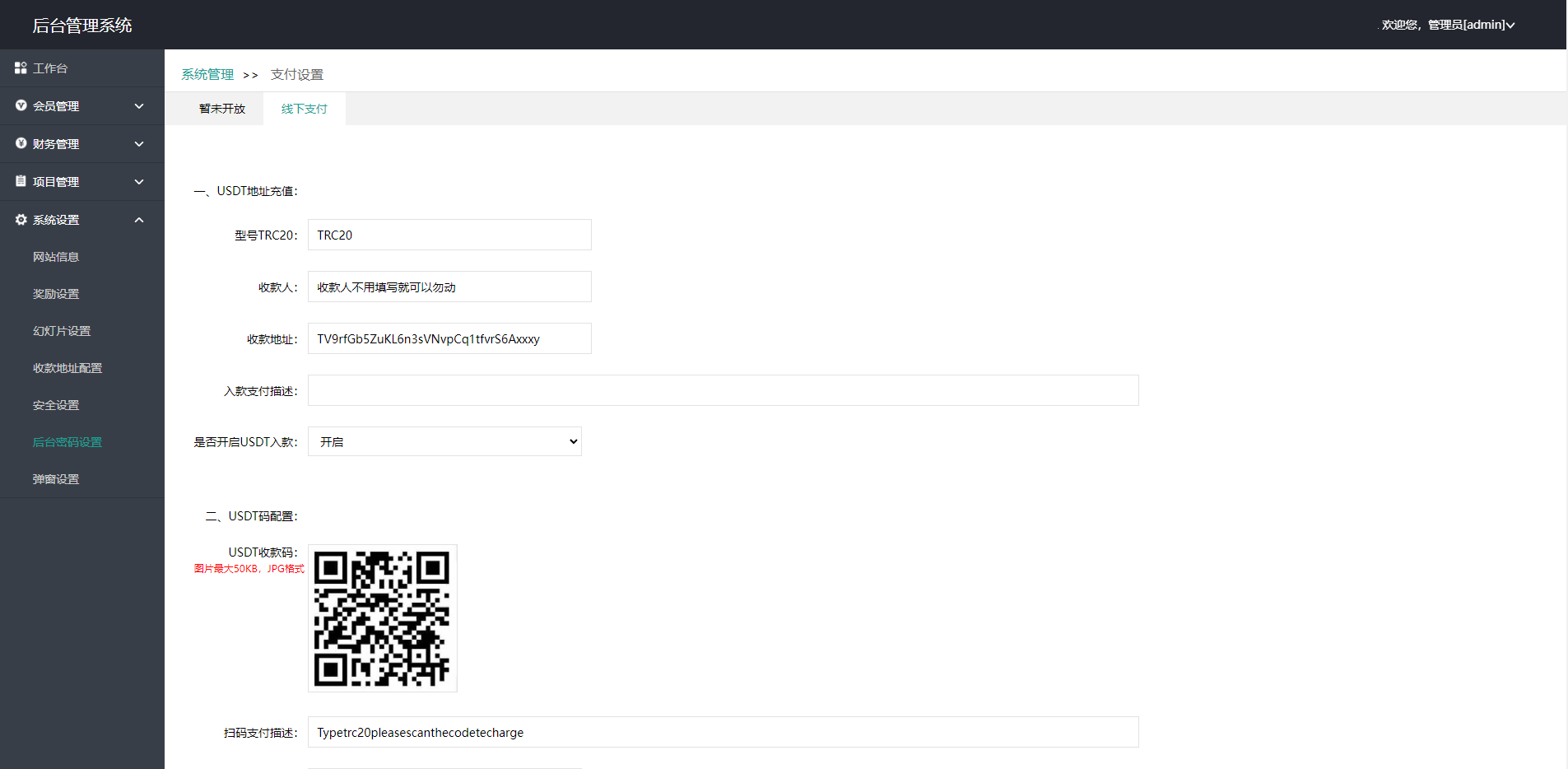系统前端单英文支持二开其他语言,充值为usdt手动后台审核
