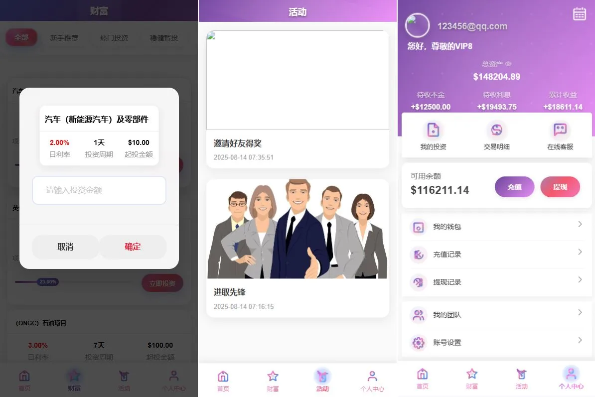 【多语言VUE海外理财源码】多语言投资理财系统/新能源投资返利/海外投资众筹签到奖励系统源码 前端VUE开发,后端thinkphp开发全开源带教程 系统功能完善,前端多语言,系统产品后台可修改不限项目类型