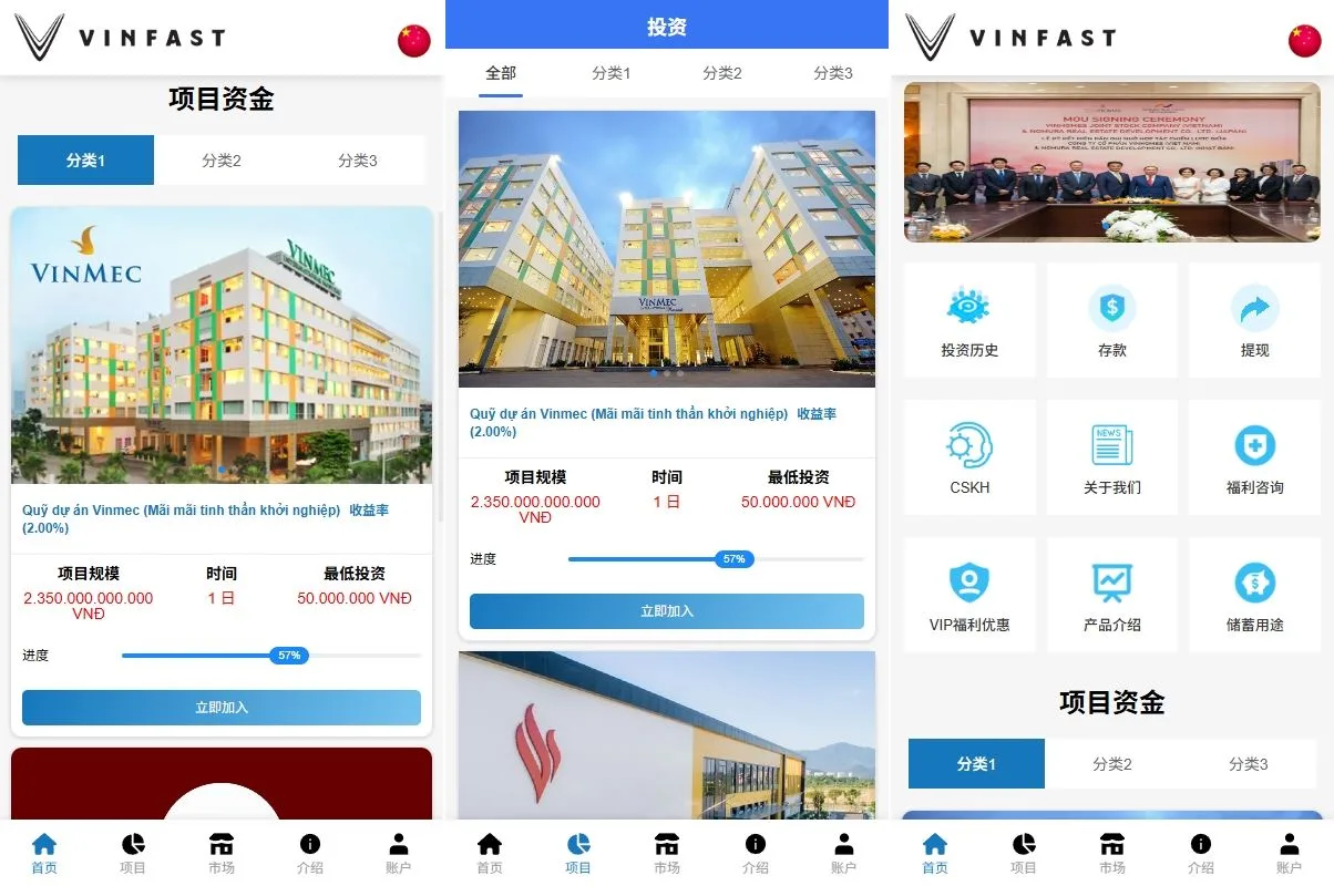 【海外越南项目投资源码】海外投资众筹系统/越南投资理财/前端VUE