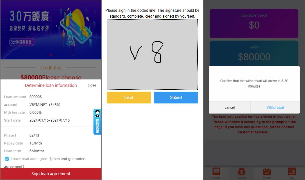 前台提交申请贷款支持手写签名等功能
