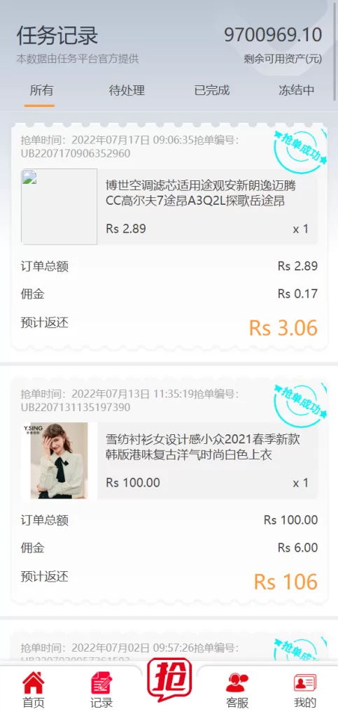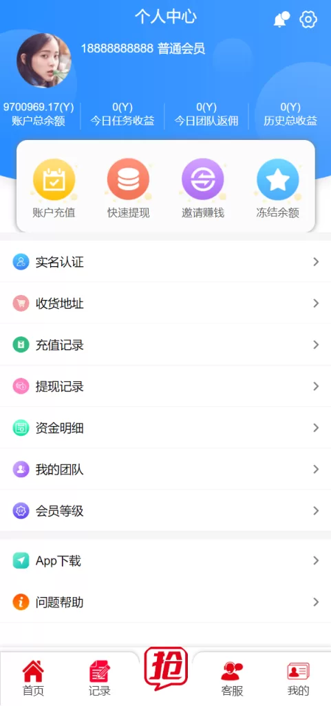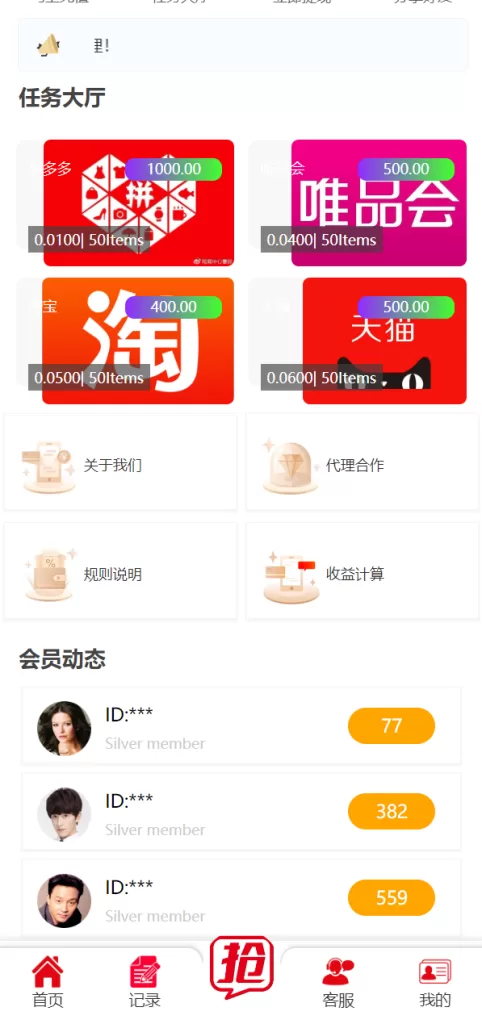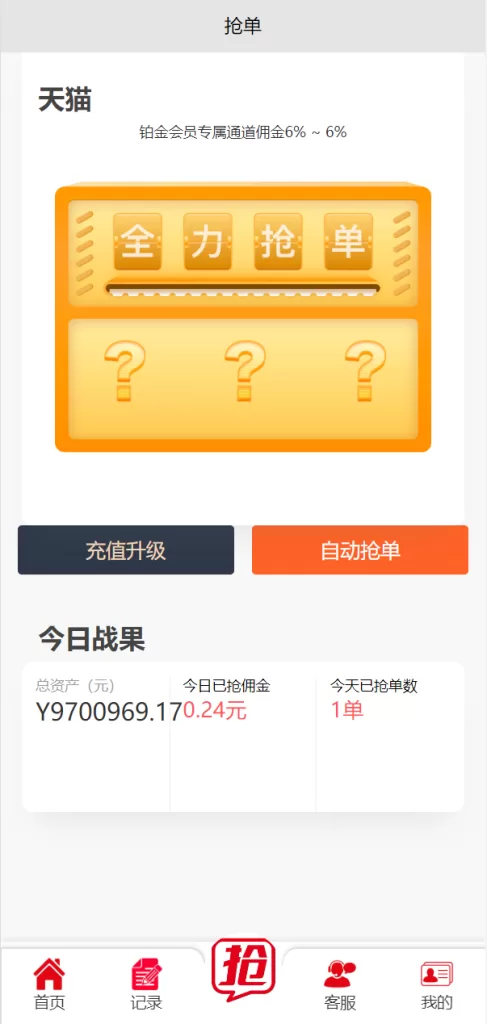理财投资【精美UI抢单源码】抢单刷单源码/订单自动匹配系统精品下载 精美UI抢单系统/抢单刷单源码/订单自动匹配系统 这是以前比较经典的抢单系统,源码支持添加其他语言 源码里附带了英文语言包,需要自己前台自行调试 亲测源码