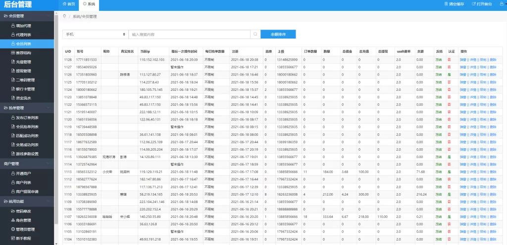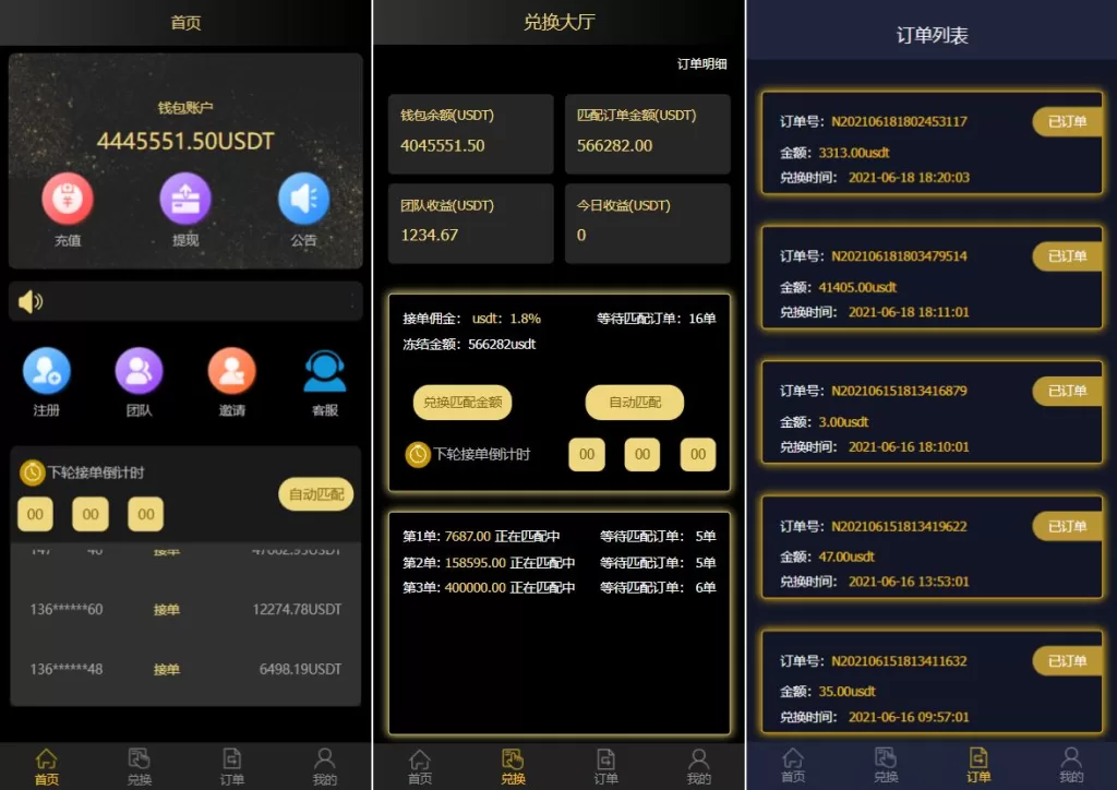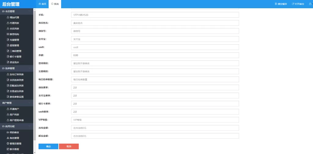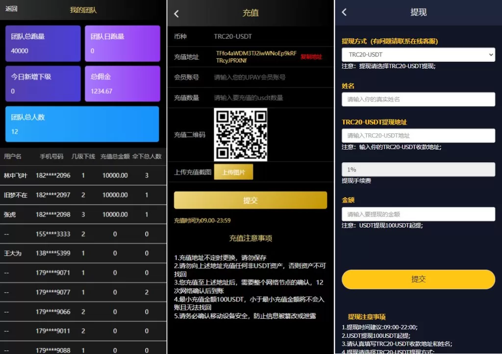 理财投资【跑分系统】二开版USDT抢单系统/自动匹配订单/USDT跑分系统精品下载 二开版USDT抢单系统/自动匹配订单/USDT跑分系统 系统是以前巅峰系统二开的,前端去除微信支付宝改为USDT了 源码功能还是比较完善的,拥有完美的团队管理,具体看图 亲测源码