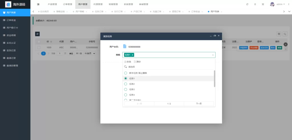 理财投资[海外抢单刷单系统]前端uinapp/策略组在线派单/订单自动匹配系统精品下载 海外抢单刷单系统,前端使用uinapp开发后端tp框架 支持用户策略定制在线派单,系统基本符合市场需求,单独的代理后台等功能 亲测源码