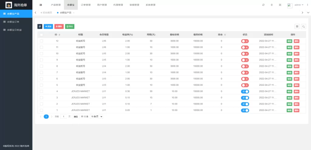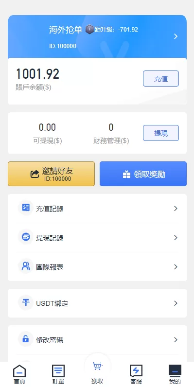 理财投资[全新多语言海外抢单源码]抢单刷单源码/订单自动匹配系统/前端uinapp精品下载 全新多语言的海外抢单刷单系统,前端使用uinapp开发可以生成原生app 系统基本符合市场需求,单独的代理后台、余利宝等功能 亲测源码