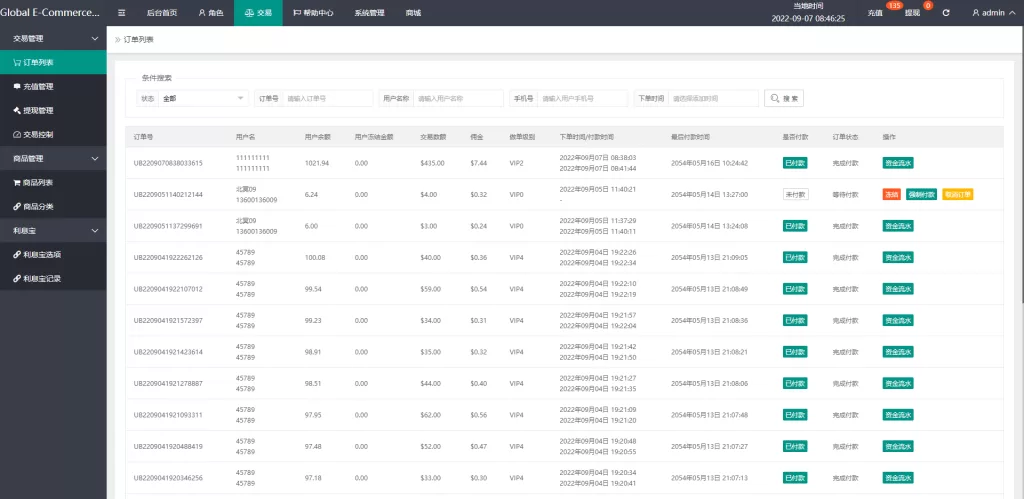 5.三级分销,带客服,等级优先,充值提现优先完美后台查询功能