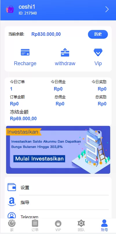 理财投资【全新UI多语言抢单源码】抢单刷单源码/单独代理后台/订单自动匹配系统精品下载 全新UI多语言抢单系统/抢单刷单源码/单独代理后台/订单自动匹配系统 此套系统是别人全新二开UI的抢单系统,二开了单独的代理后台,具体看图 源码默认是多语言的,前端语言选项被注释了需要自己改下 亲测源码