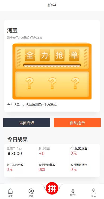 理财投资【抢单拼团回购系统】抢单刷单源码/余额宝/订单自带匹配系统精品下载 此套系统是以前别人运营的抢单和拼单集合一体的系统 刷单为单纯的刷单,拼单需要邀请好友共同完成,然后支持回购 前端单中文支持二开其他语言 亲测源码