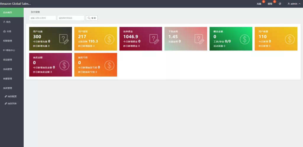 理财投资【亚马逊抢单刷单系统】海外订单自动匹配系统/派单/转盘精品下载 二开版亚马逊抢单刷单系统,前端英文跟俄罗斯语言支持二开其他语言 系统支持预约派单等功能,新增抽奖转盘、代理数据统计、数据总汇等功能 亲测源码