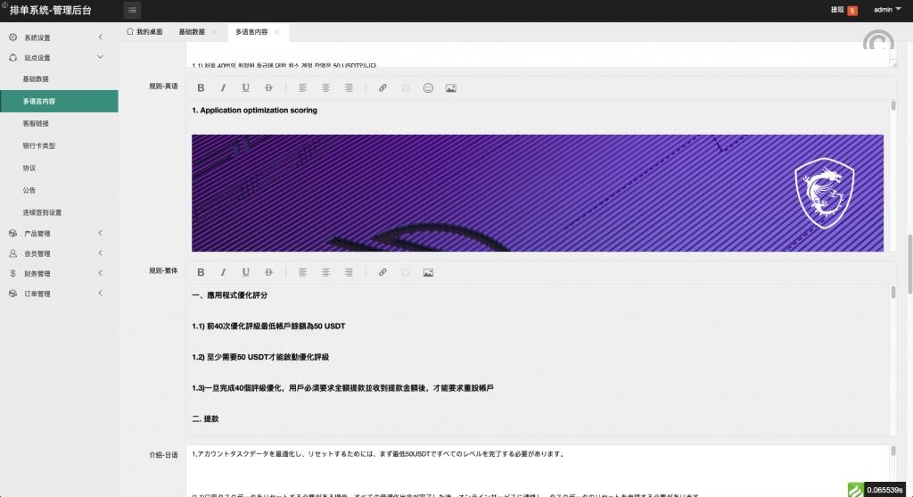 [最新]全新多國語言/抢单app优化/二开新UI软件抢单刷單系统/订单自动匹配/連單卡單/UniApp系统源码 我们对App进行了优化,特别加强了抢单功能,以提升用户体验。近期流行的刷單功能也已加入,支持多达四种语言,默认语言为英文。系统新增了后台设置功能,允许管理员设定用户抢单时可用余额的百分比范围,从而提供更灵活的操作选项。同时,我们还新增了签到功能,鼓励用户每日登录并参与互动。 刷单抢单源码