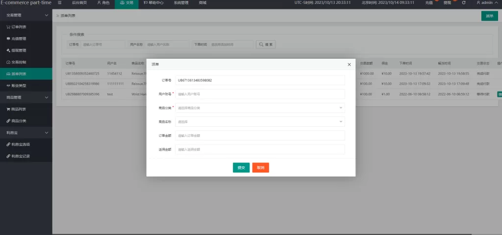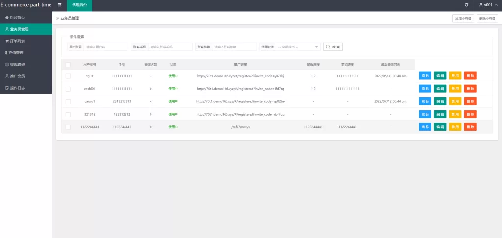 带后台派单,前端直接订单提交,带代理后台业务员推广