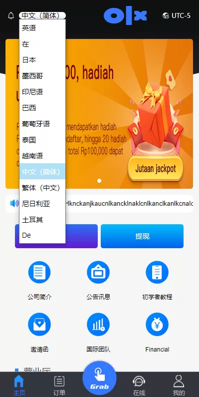 多语言海外抢单刷单系统,前端多语言默认隐藏自行开启