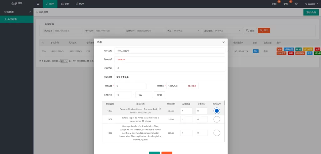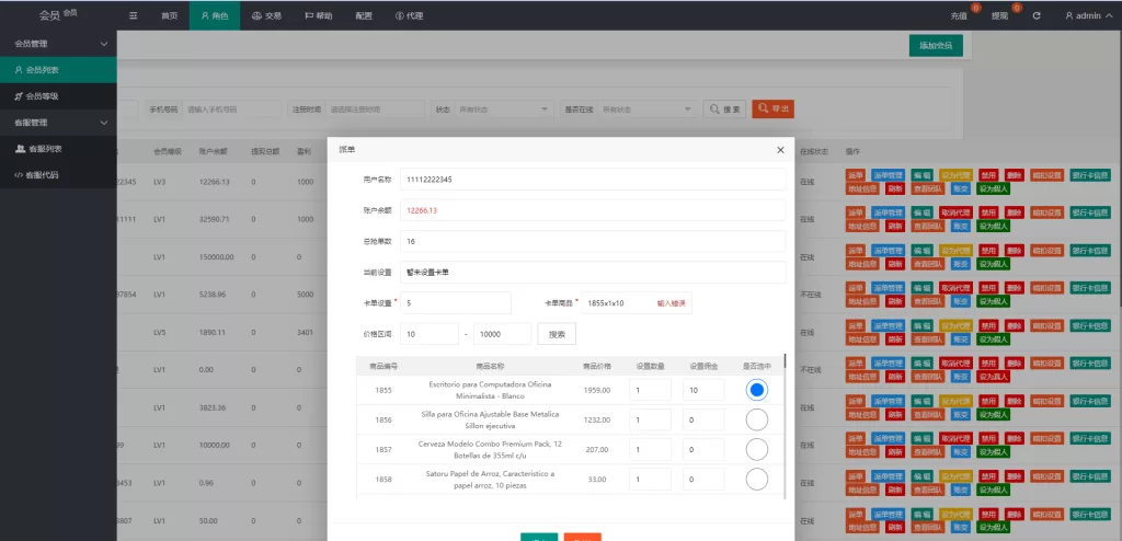 系统支持卡单、代理后台等功能