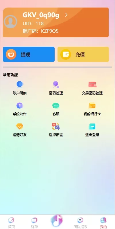 代理提现(后台可设置代理分红比例。代理的余额按照他旗下所有会员的真实充值金额*比例,代理可申请提现,后台审核)