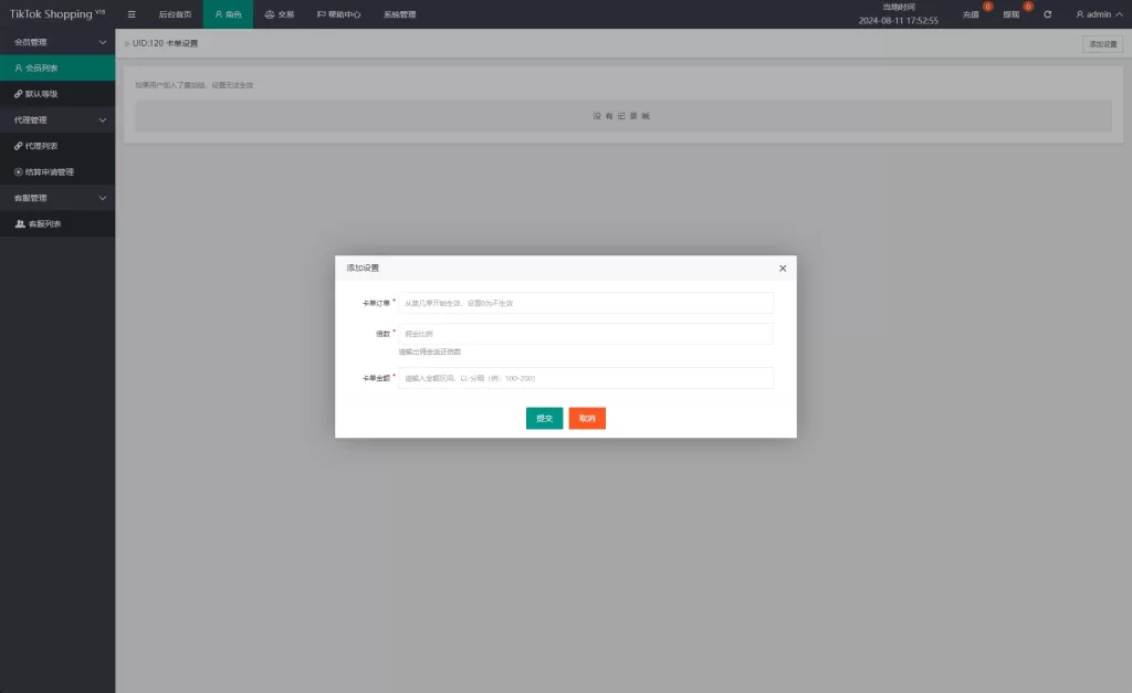 卡单连单控制(后台输入第几单开始卡单,输入佣金系数 和要让客户充值的金额区间,那么用户在这个卡单生效后 订单的价格肯定在后台设置的充值的区间之内,可以多个数量)