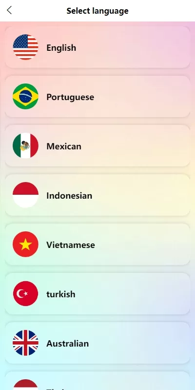多语言(英语、葡萄牙语、墨西哥语、印尼语、越南语、土耳其语、澳大利亚语、泰语、中文、俄语、波兰语、日语、西班牙语、阿拉伯语、韩语)后台可开关