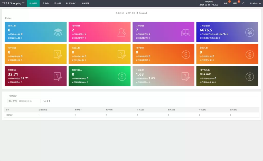 统计(后台统计和代理统计 均展示真人第三方充值数据)