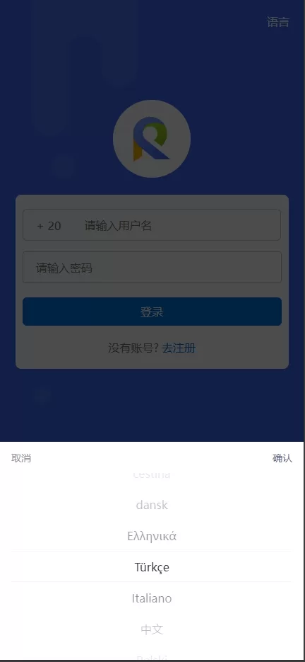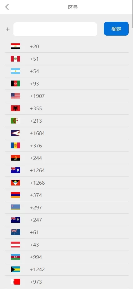 登录注册需要勾选区号(区号已经集成所有国家)