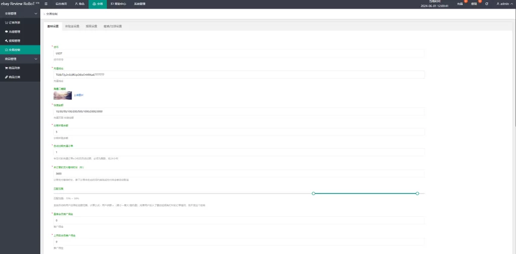 卡单控制(后台输入第几单开始卡单,输入佣金系数 和要让客户充值的金额区间,那么用户在这个卡单生效后 订单的价格肯定在后台设置的充值的区间之内,可以多个数量)