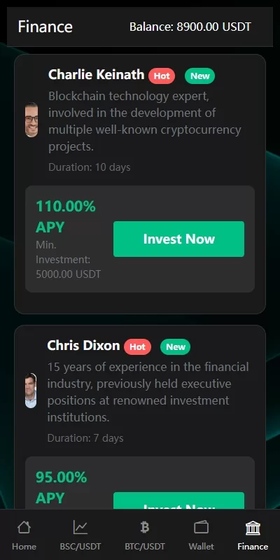 理财投资【海外最新交易所系统源码】秒合约/杠杆交易/投资/K线控制精品下载 简约版交易所系统,前端自适应带获利动画 系统只有BSC跟BTC交易,支持秒合约跟杠杆交易 支持K线时间段涨跌控制,支持用户订单单控 亲测源码