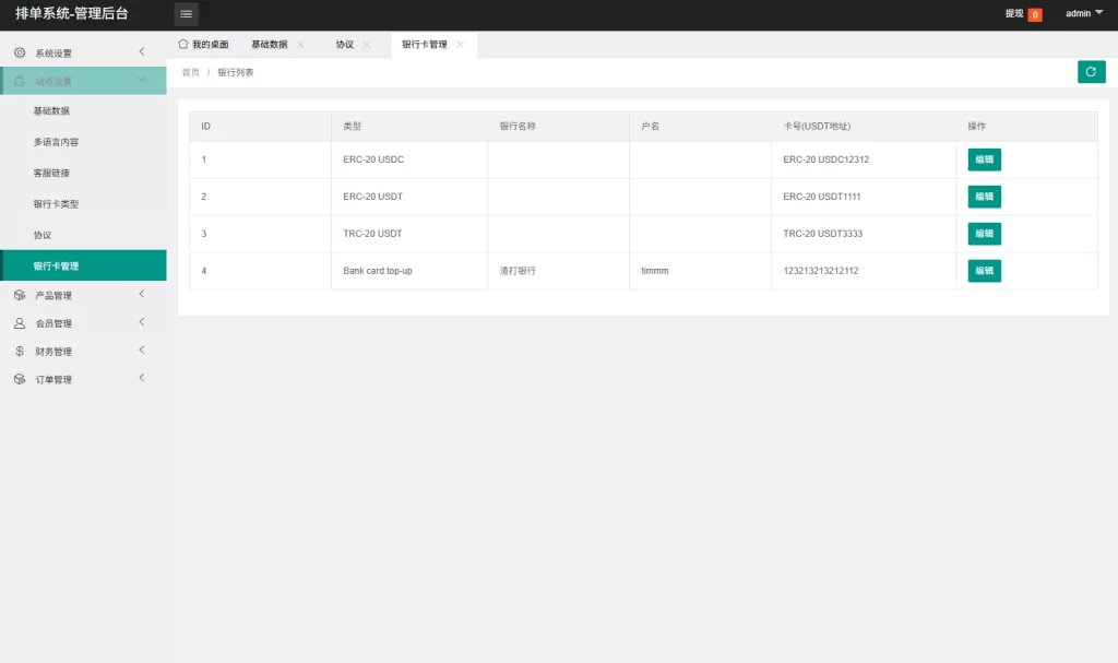 支持连单卡单,信用分,权限代理,usdt充提
