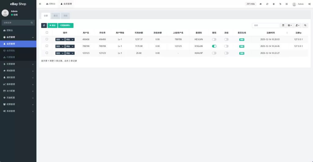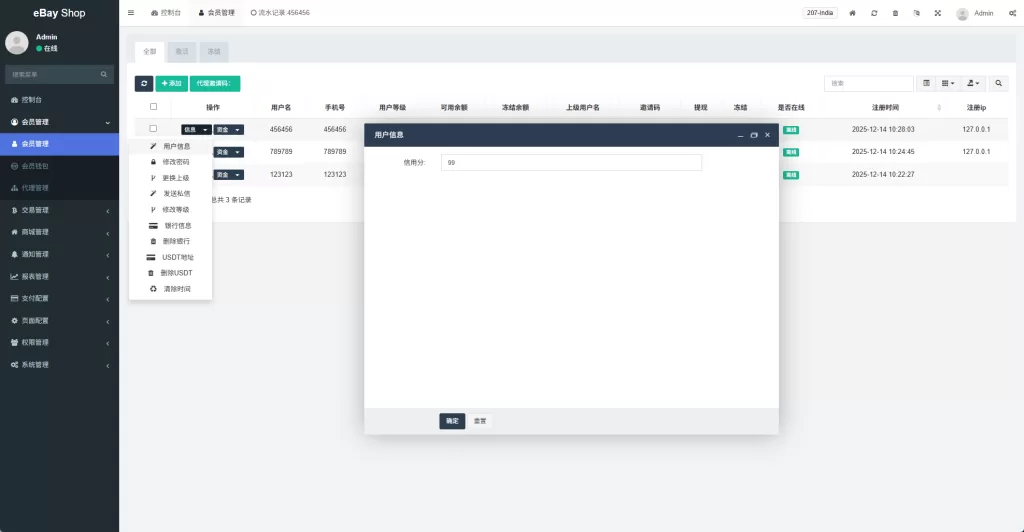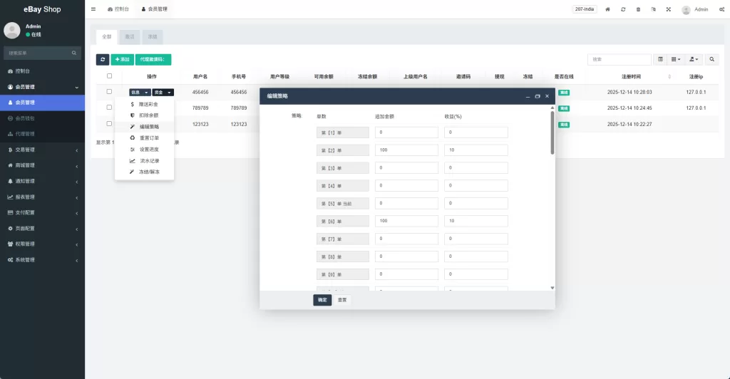 理财投资多语言eBay抢单刷单系统#40单任务快杀盘#连单卡单精品下载 前端UI定制二开,前端VUE开发,后端php全开源带教程系统核心指派订单: 自由设置每一个订单的金额及佣金比例,亦可直接设置1-40单;若设置的订单金额超过用户余额,则显示:请充值XXX元,以获得佣金XXX元。 支持设置用户信用分; 支持设置新用户注册送; 支持单独设置某用户禁止提现,或冻结; 支持权限代理后台 亲测源码