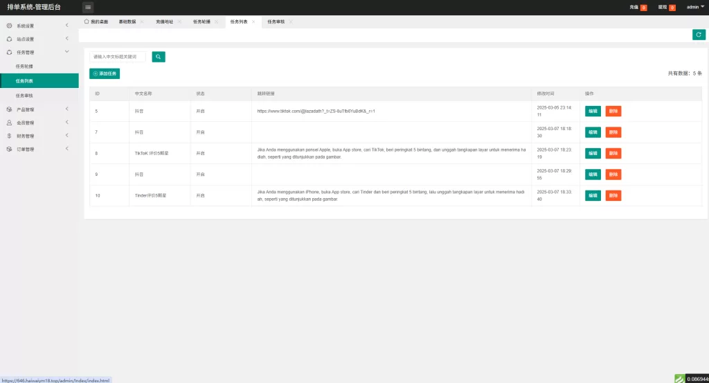 功能支持:签到,做任务,连单卡单,权限代理等