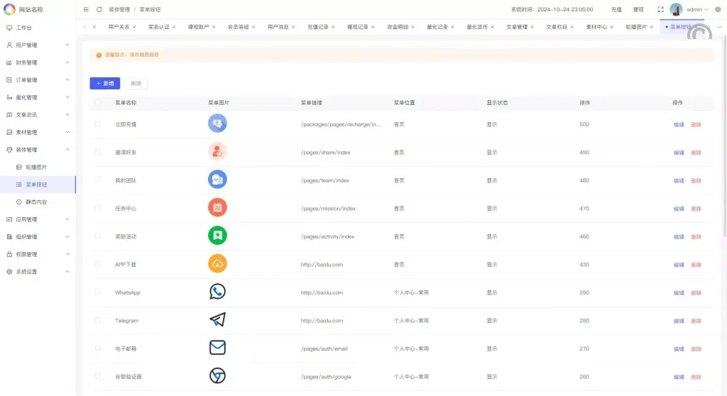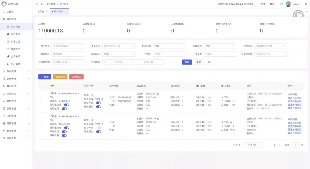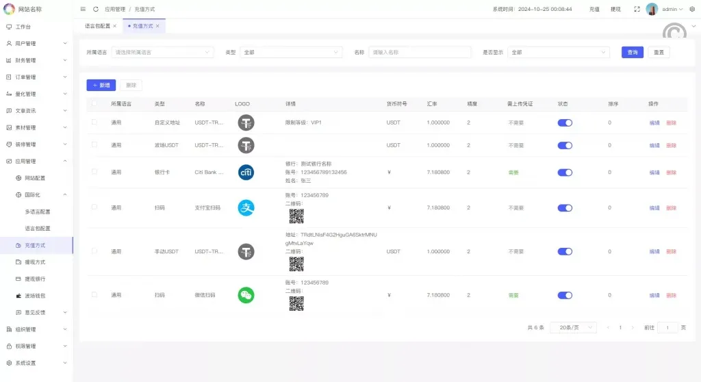 编程语言:前端UNIAPP、后端VUE、代理端VUE、服务端thinkPHP6,四端分离。 语言支持:目前已上传19种语言,支持后端自定义拓展语言。 充值功能:微信扫码、支付宝扫码、银行卡转账、USDT手动转账、USDT自定义地址、USDT自动充值(对接波场官网)。 提现功能:微信、支付宝、银行卡、USDT。 1、支持后端自定义拓展语言 2、根据法规需求,仅支持三级分销机制,用户邀请朋友能获得对应百分比奖励 3、VIP等级划分,升级条件: 用户有效金额、1代推荐人数、推荐人等级 4、可自定义排序语言,前端首次访问根据排序显示 5、素材中心统一管理,用到的视频或图片选择即可 6、支持多种客服方式 7、行情接口对接fire币网,可自定义增减显示的货币 8、认证方式:邮箱认证、谷歌认证、实名认证 9、可控制IP注册数量,防止水军刷水 10、可设置充值或者奖励会冻结资金n小时,防止刷水 11、后端、代理端可自定义开启谷歌验证登录 12、提现可控制每日次数、金额范围、是否需要实名 13、多种奖励方式,vip升级奖励、累积邀请奖励、邀请首充奖励等 14、对接有道翻译,可根据不同语言自动翻译对应内容 15、SMTP邮箱,只需在后端填写对应信息就可发送邮件 16、支持站内信、系统消息等消息类型 17、菜单、轮播、多个静态内容均支持后端自定义 18、可自动生成代码,二开福音 19、代理线功能,后端开启用户为代理,即可登录代理端查看代理下级用户情况 20、带有安全锁机制,密码连续输错自动进入锁定状态