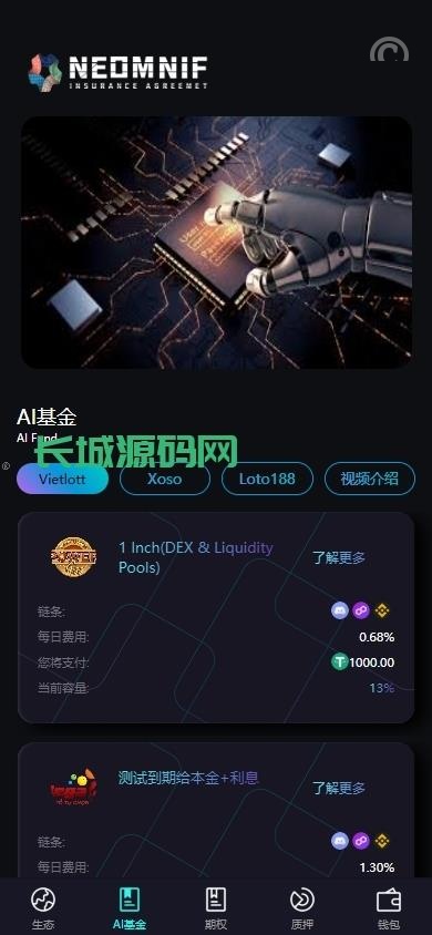 提供多种AI基金项目选择(如 Yieldott、Xoso、Loto188 等)