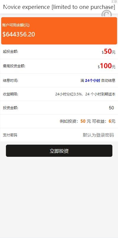 1、新手体验投资项目:每日返息,到期还本(投资期限短,利息高)