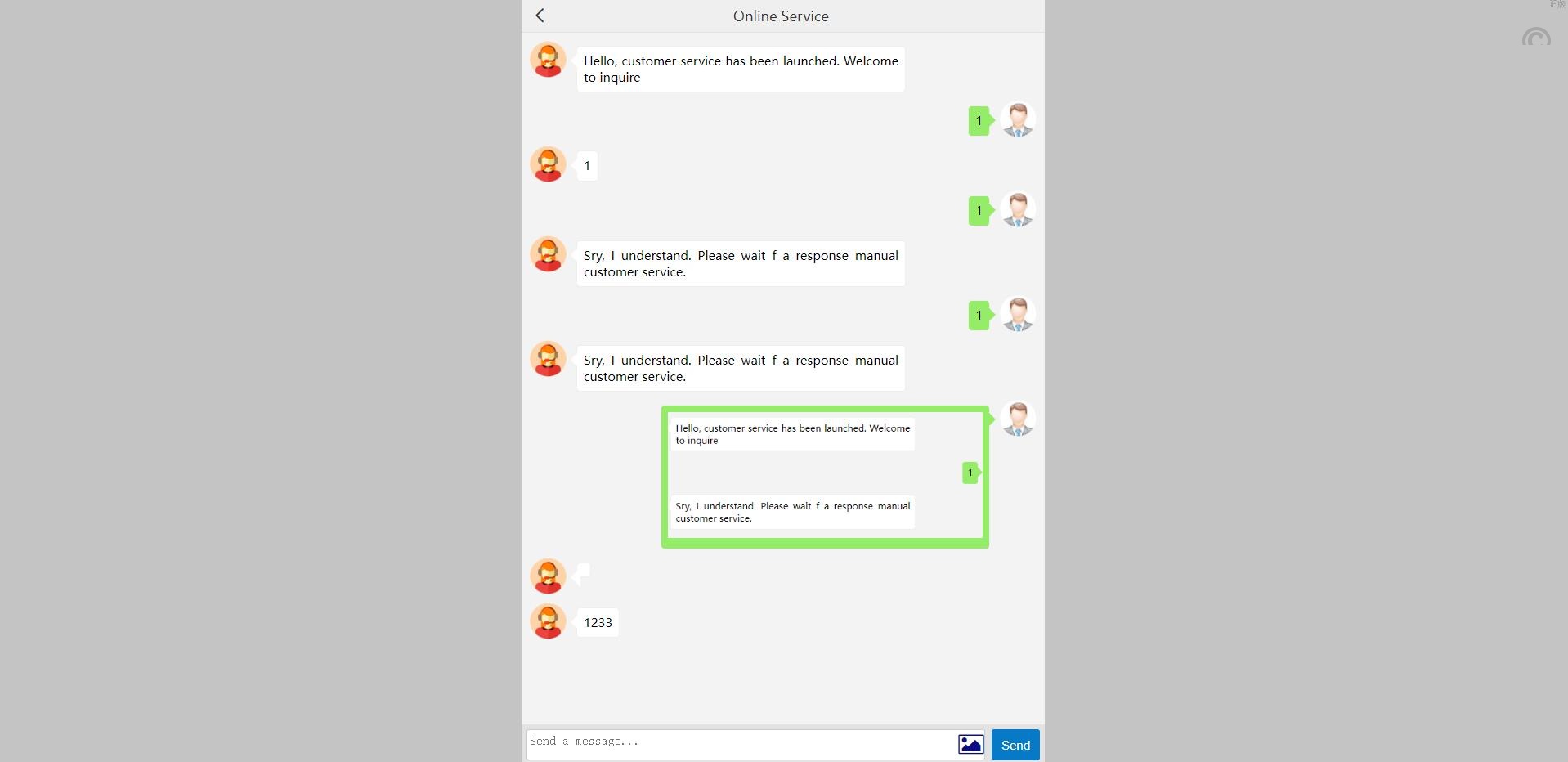 2,此版本前后台只能发送文字和图片(图片是选择后自动发送)