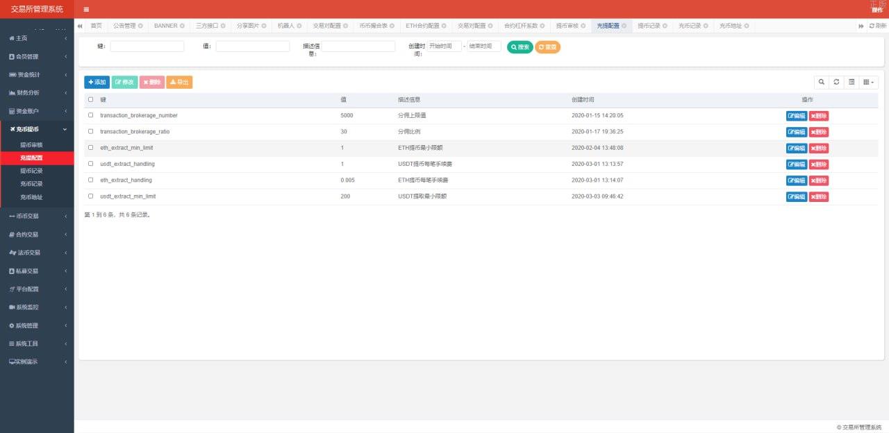 3币种管理(币种的添加设置、提币账户管理、是否、是否显示、交易对管理);