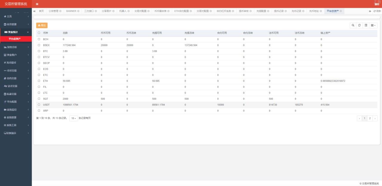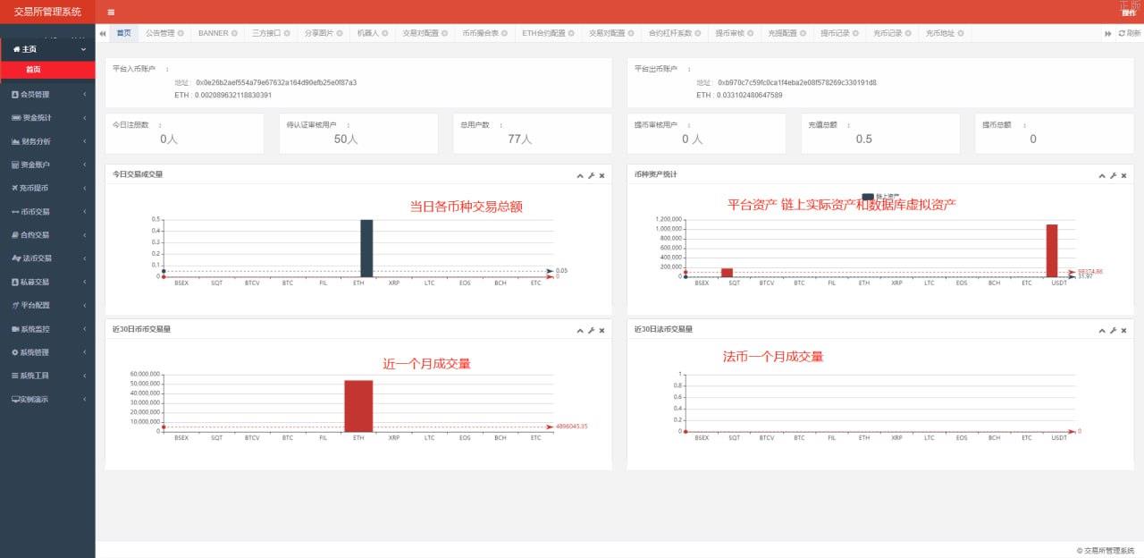 1.系统概况(币种统计、用户统计、交易统计、异常用户);