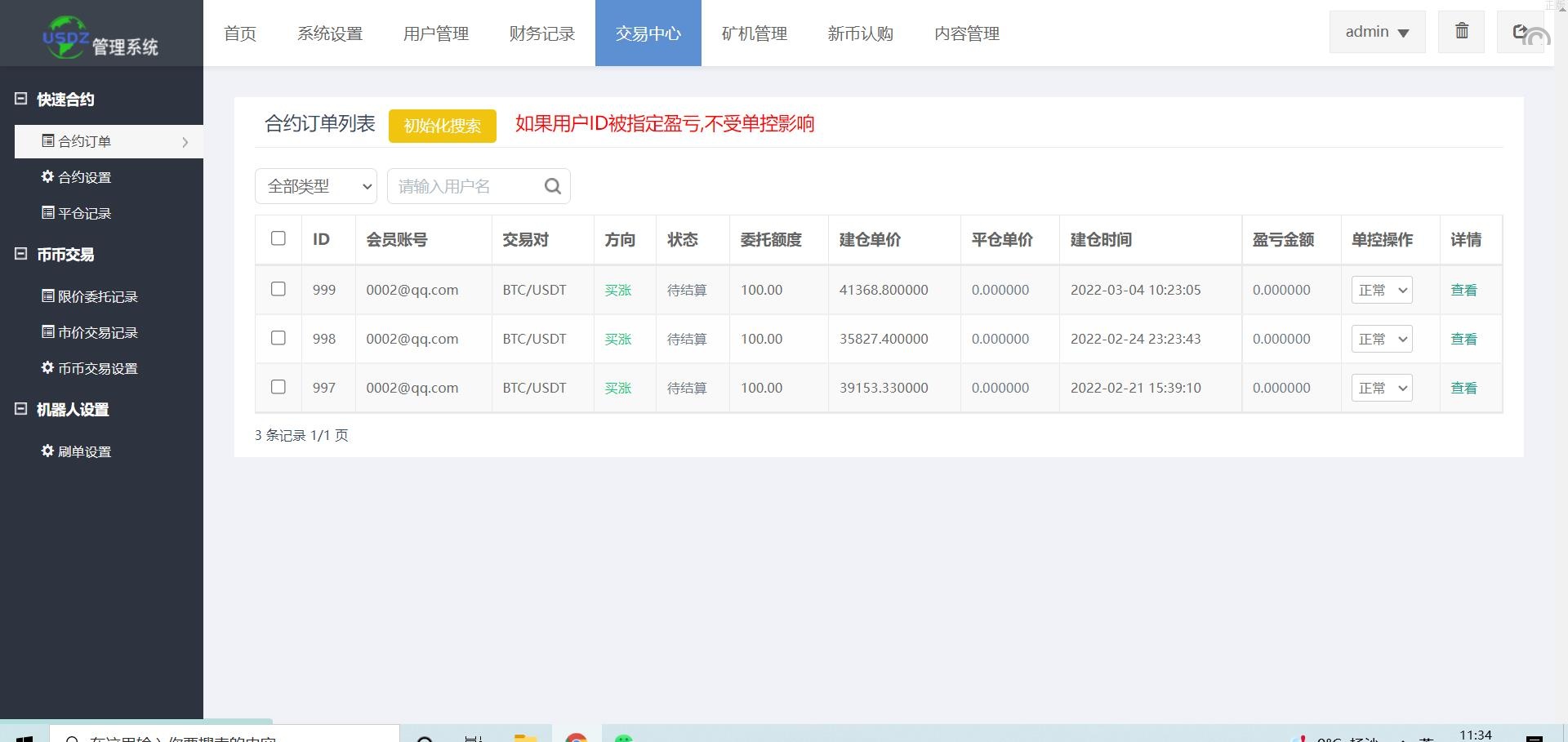 目前这是开发的第一款交易所系统,有秒交易,有合约,支持学习,不支持运行。