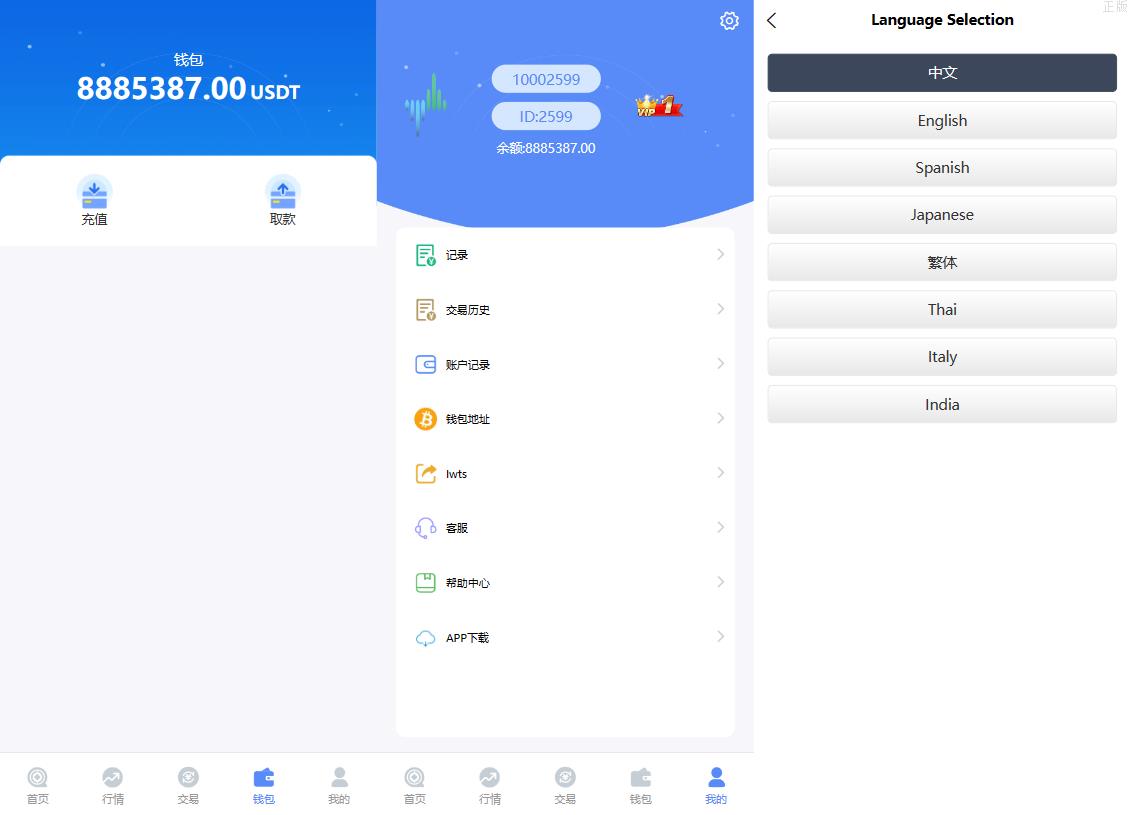 多國語言微盘交易所/多國語言微盘/仿交易所UI源码