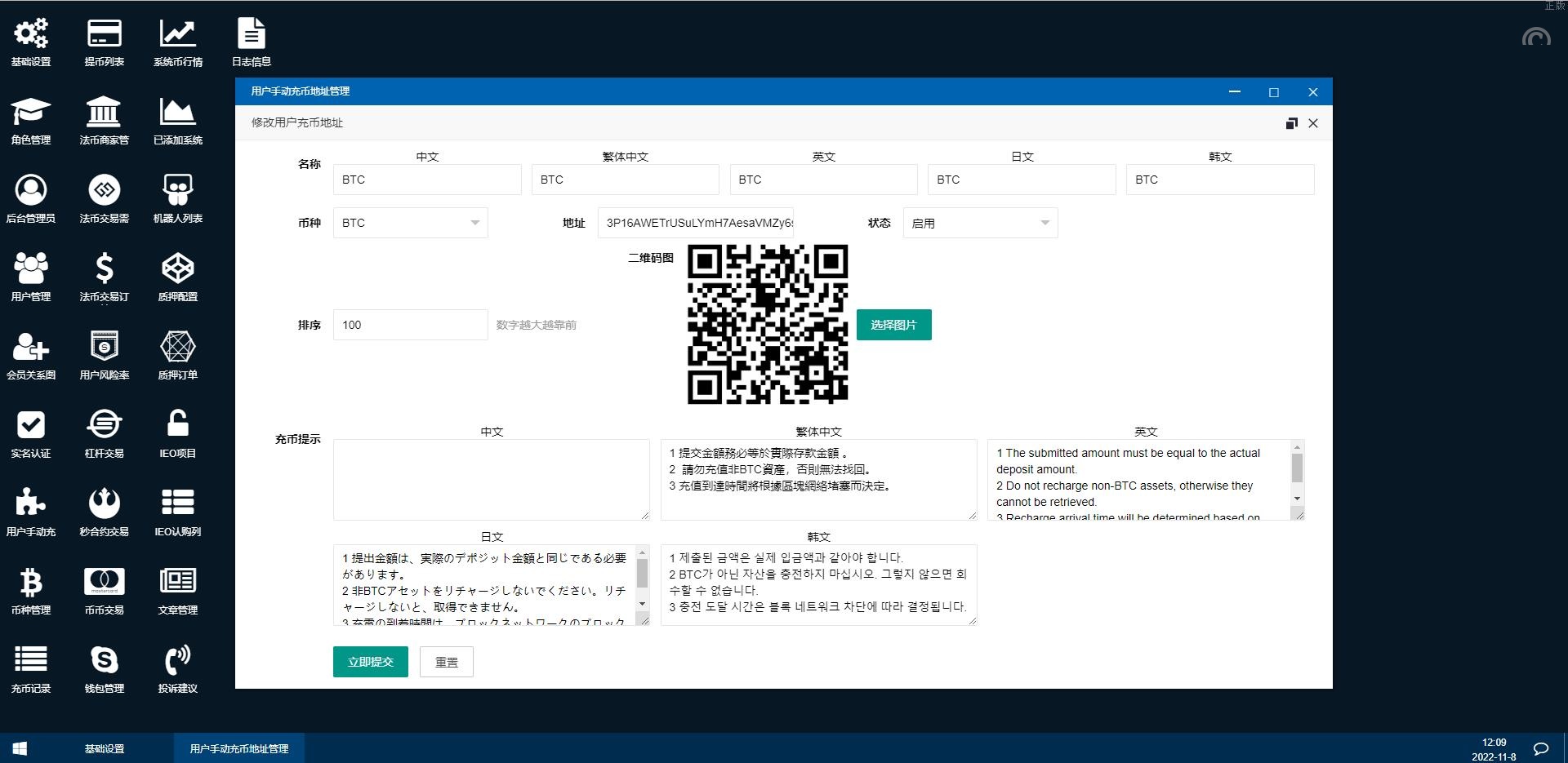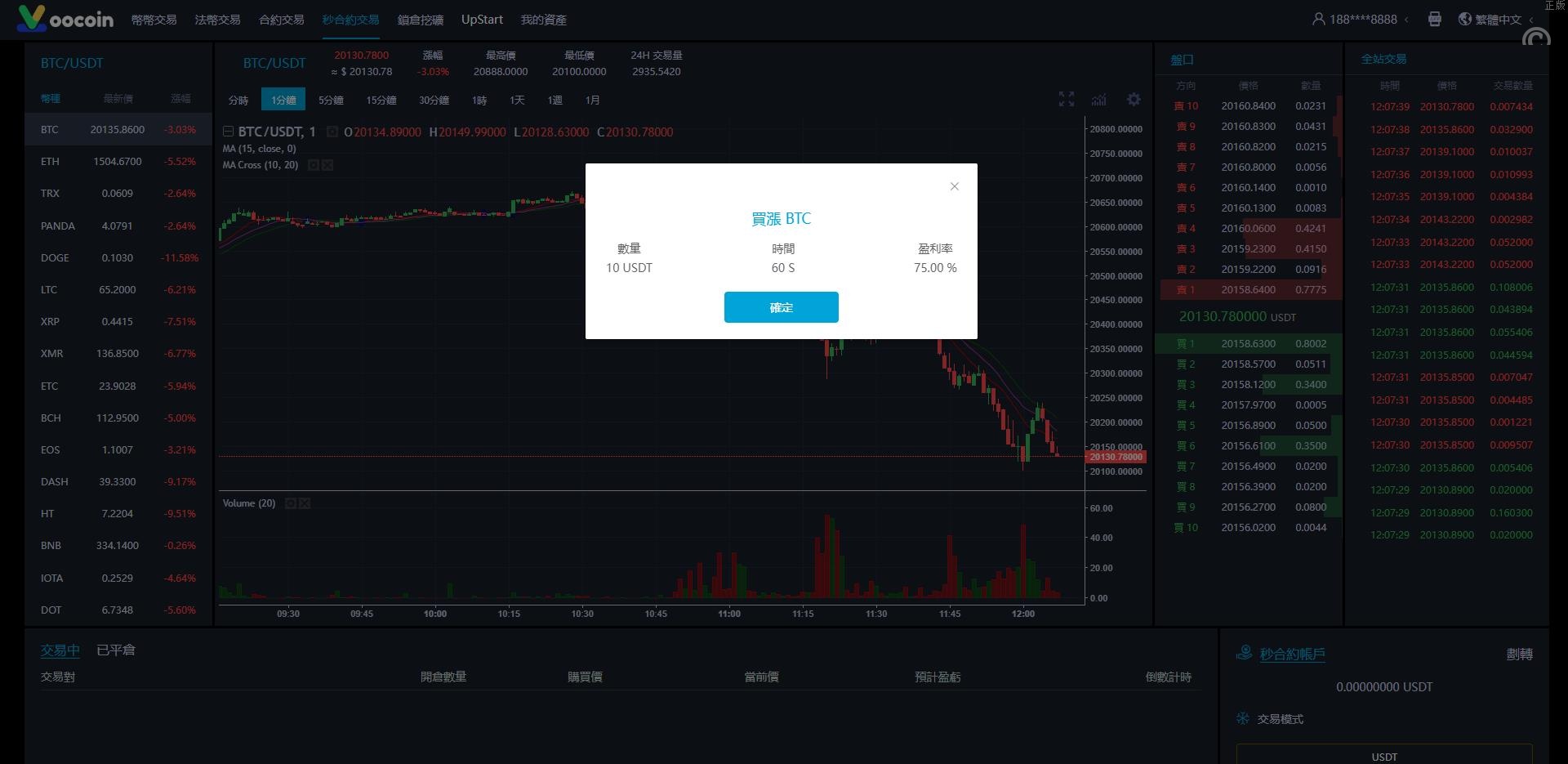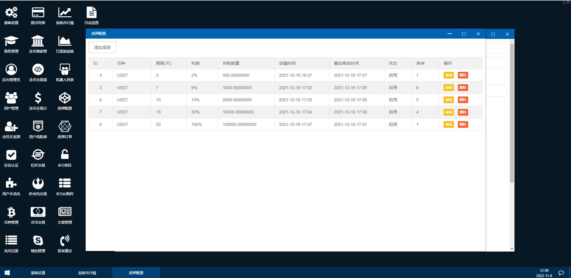 二开完整版多國語言交易所/币币秒合约/锁仓质押/IEO认购/完整机器人 此套算很完整的一套多國語言交易所了,手机电脑端都是vue源码 币币交易、秒合约交易、锁仓质押、IEO认购、平台币预生成K线(完整机器人) 另新增了后台设置充币地址等新功能,附带完整搭建教程